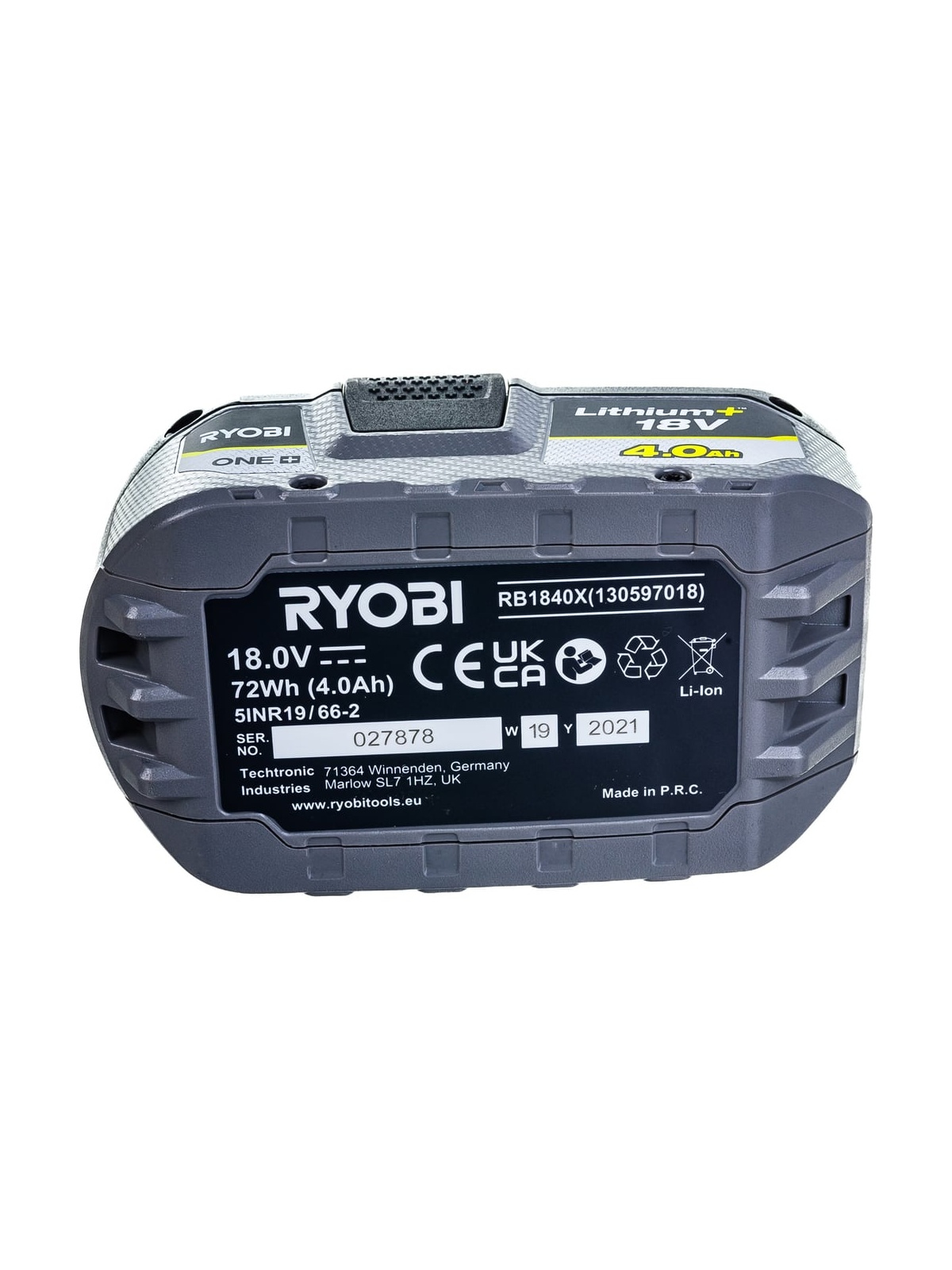 Аккумулятор Ryobi ONE+ RB1840X (18 В; 4 А*ч; Li-ion) 5133005053 оснащен 4-позиционным индикатором уровня заряда (100%, 75%, 50%, 25%). Корпус защищен от ударов, что увеличивает срок службы аккумулятора. Технология IntelliCell™ позволяет проверить состояние каждой ячейки.