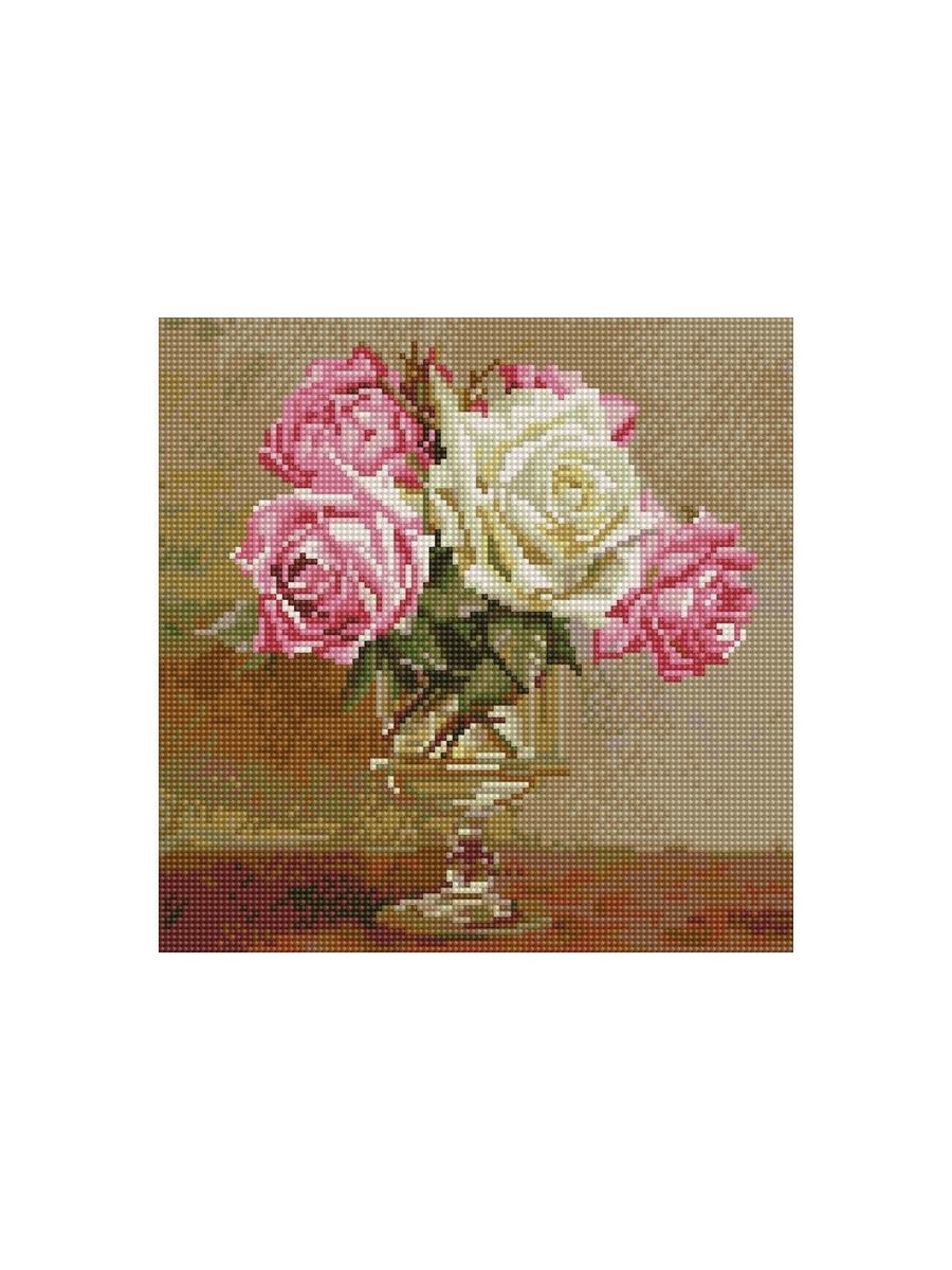 В наборе "В старинной вазочке" из мозаичных элементов можно выложить картину Игоря Бузина с букетом разноцветных роз в винтажной вазе.