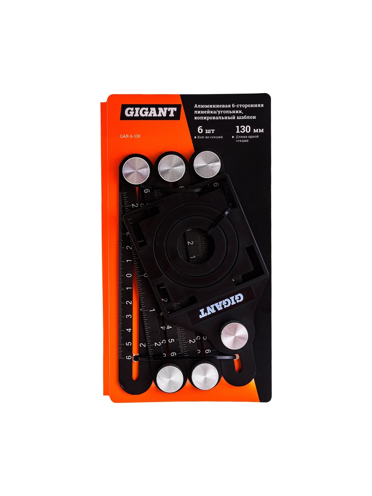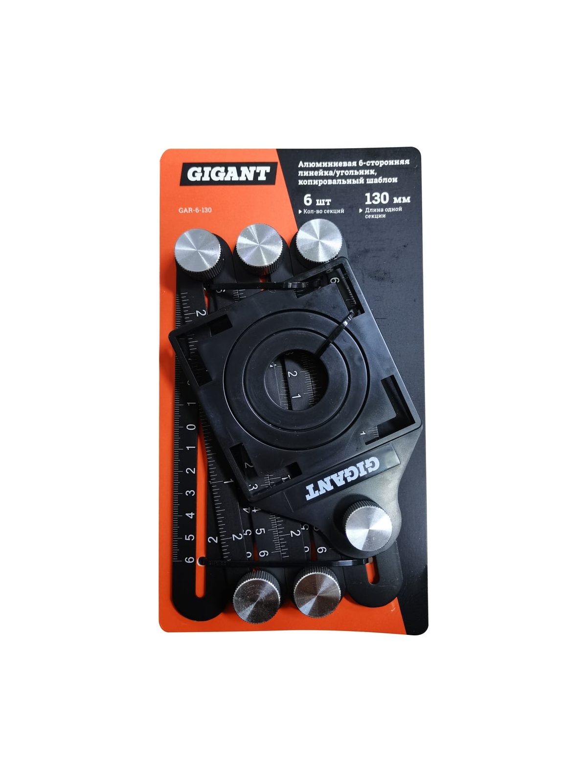 Алюминиевая 6-сторонняя линейка/угольник Gigant копировальный шаблон 130 мм GAR-6-130 - это многофункциональный инструмент, при помощи которого можно переносить углы и контуры на детали для последующей обработки и резки. Имеет несколько шарниров, которые облегчают закрепление детали. Это положительно сказывается на точности. Инструмент имеет малый вес и удобен в использовании. В сложенном состоянии занимает минимум места. Максимальная измеряемая длина по внешней и внутренней стороне угольника - 175 мм. Продукция представлена профессиональными и бытовыми инструментами, имеет доступную цену и высокое качество. При изготовлении товаров Gigant используется современное оборудование и прочные материалы. Производство осуществляется на современных предприятиях России и Азии. Тестирование товаров осуществляется в два этапа, каждая партия инструментов проходит проверку на соответствие стандартам и заявленным техническим характеристикам. Это является залогом качества и надежности готового продукта. Продукция представлена широкой линейкой инструментов. У нас можно приобрести ручной инструмент, строительный, садовый, сантехнический, климатический, крепежный, автогаражный, а также станки, расходные материалы и многое другое.