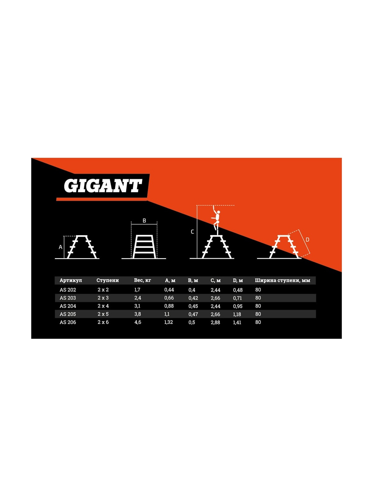 Ширина ступеней, мм - 80