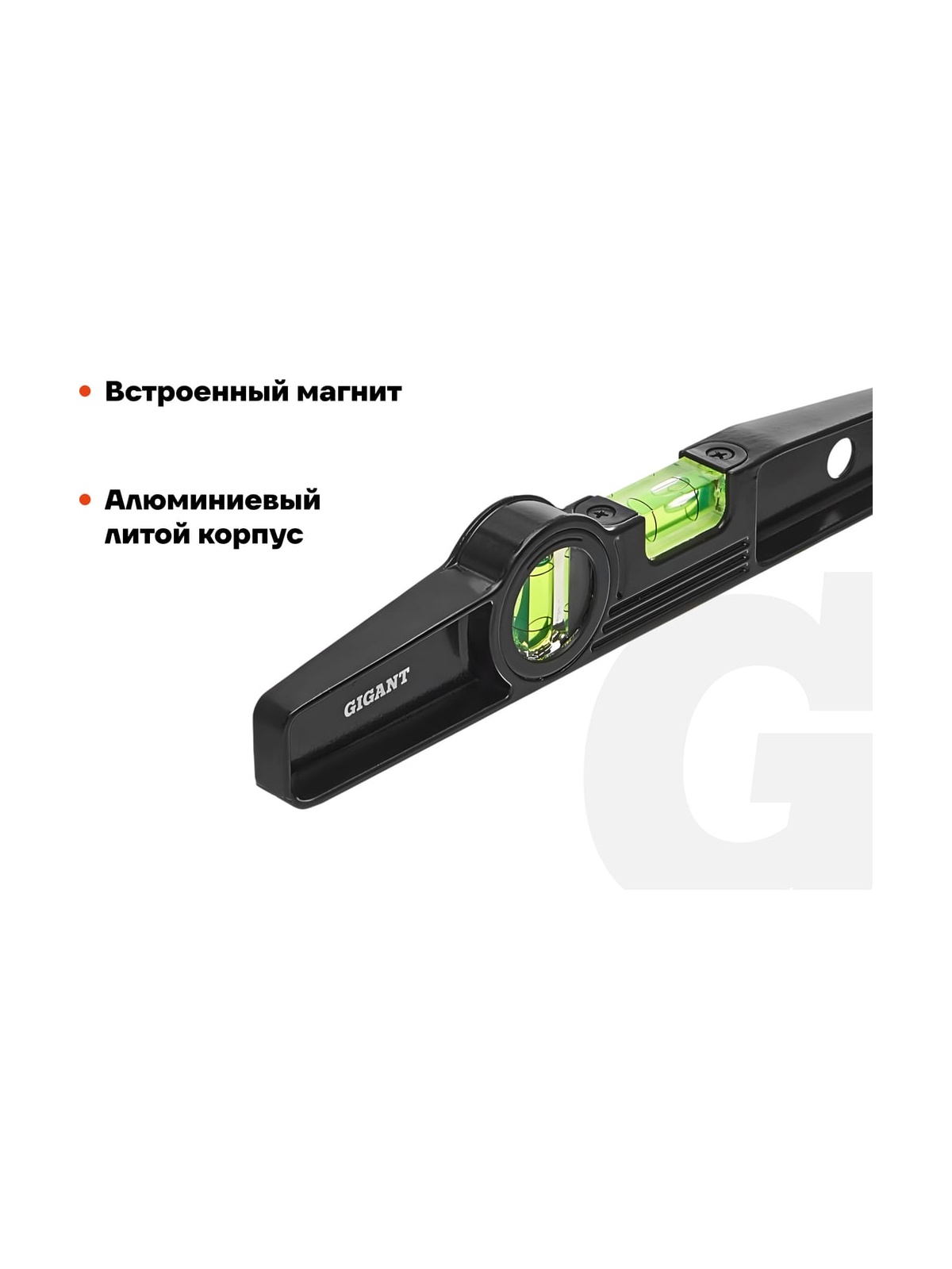 Алюминиевый магнитный строительный уровень Gigant 250мм GWM250 служит для выявления отклонения поверхности по горизонтали и вертикали. Уровень надежно ложится на измеряемую плоскость и не скользит по ней благодаря перфорированной поверхности и встроенному в изделие магниту. Конструкция оснащена стойкими к излучению глазками и выполнена из алюминия.