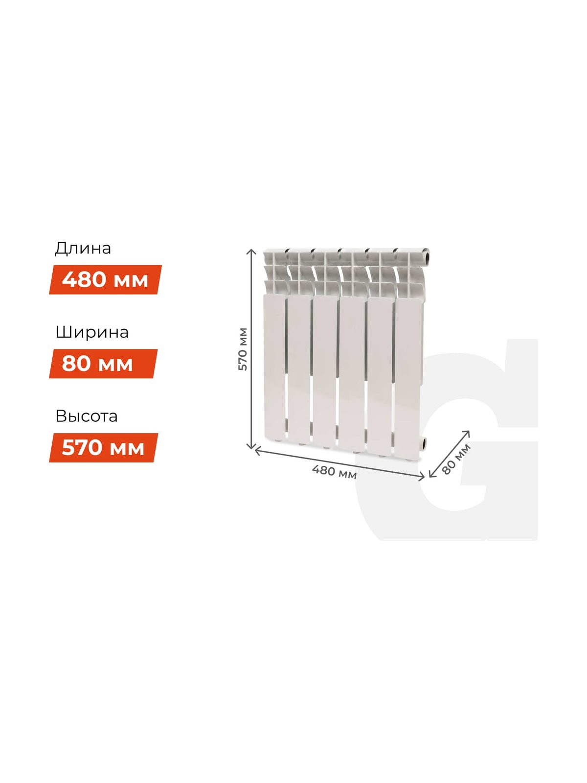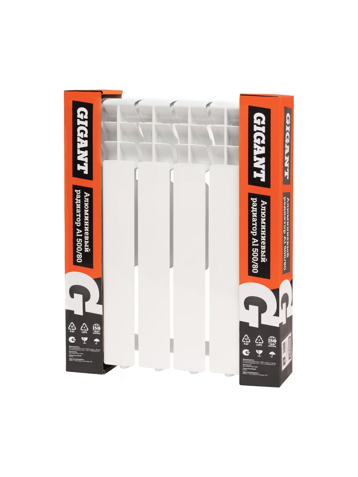 Алюминиевый радиатор Al 500/80 6 секций Gigant GRA58-6 - современный отопительный прибор. Алюминий имеет высокую теплопроводность и быстро достигает необходимой температуры. Гарантия надежности и высокой производительности Алюминиевые радиаторы Gigant производятся методом литья под давлением, что обеспечивает надежность конструкции прибора. Повышенная коррозийная устойчивость внутренней отделки рассчитана на соприкосновение с жесткой водопроводной водой, либо незамерзающей жидкостью. Особая волнообразная форма оребрения повышает теплоотдачу на 3% за счет беспрепятственного прохождения нагреваемого воздуха при движении внутри радиатора. Дополнительное оребрение на вертикальном коллекторе секции увеличивает теплоотдачу радиатора на 5%. Такое решение способствует более быстрому обогреву помещений при том же размере и весе секций. Межсекционные прокладки из материала “Novaform Comfort” на композитной основе надежно герметизируют все соединения и гарантируют отсутствие протечек.