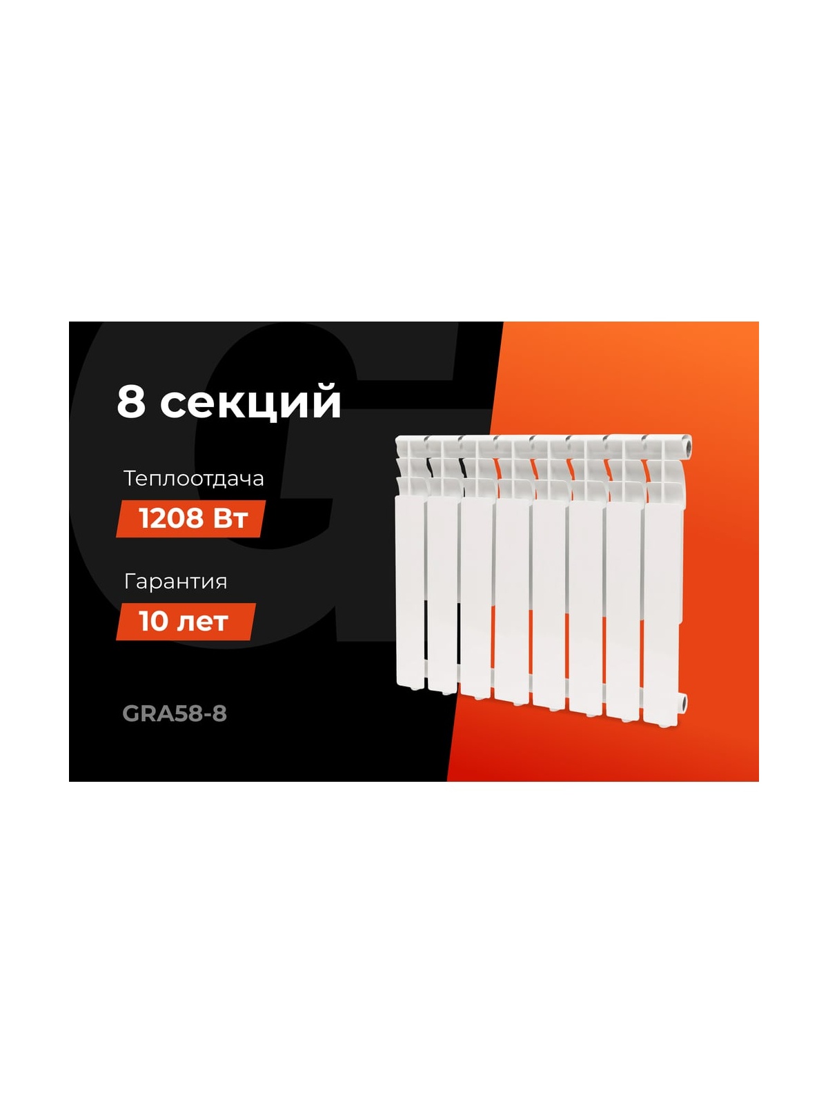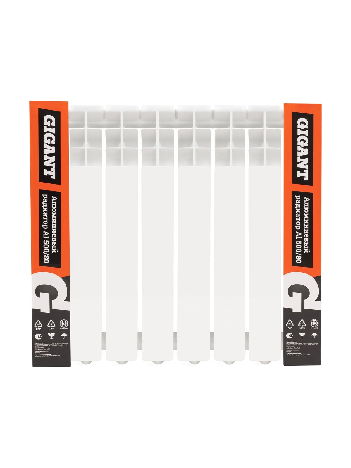 Алюминиевый радиатор Al 500/80 8 секций Gigant GRA58-8 - современный отопительный прибор. Алюминий имеет высокую теплопроводность и быстро достигает необходимой температуры. Гарантия надежности и высокой производительности Алюминиевые радиаторы Gigant производятся методом литья под давлением, что обеспечивает надежность конструкции прибора. Повышенная коррозийная устойчивость внутренней отделки рассчитана на соприкосновение с жесткой водопроводной водой, либо незамерзающей жидкостью. Особая волнообразная форма оребрения повышает теплоотдачу на 3% за счет беспрепятственного прохождения нагреваемого воздуха при движении внутри радиатора. Дополнительное оребрение на вертикальном коллекторе секции увеличивает теплоотдачу радиатора на 5%. Такое решение способствует более быстрому обогреву помещений при том же размере и весе секций. Межсекционные прокладки из материала “Novaform Comfort” на композитной основе надежно герметизируют все соединения и гарантируют отсутствие протечек.
