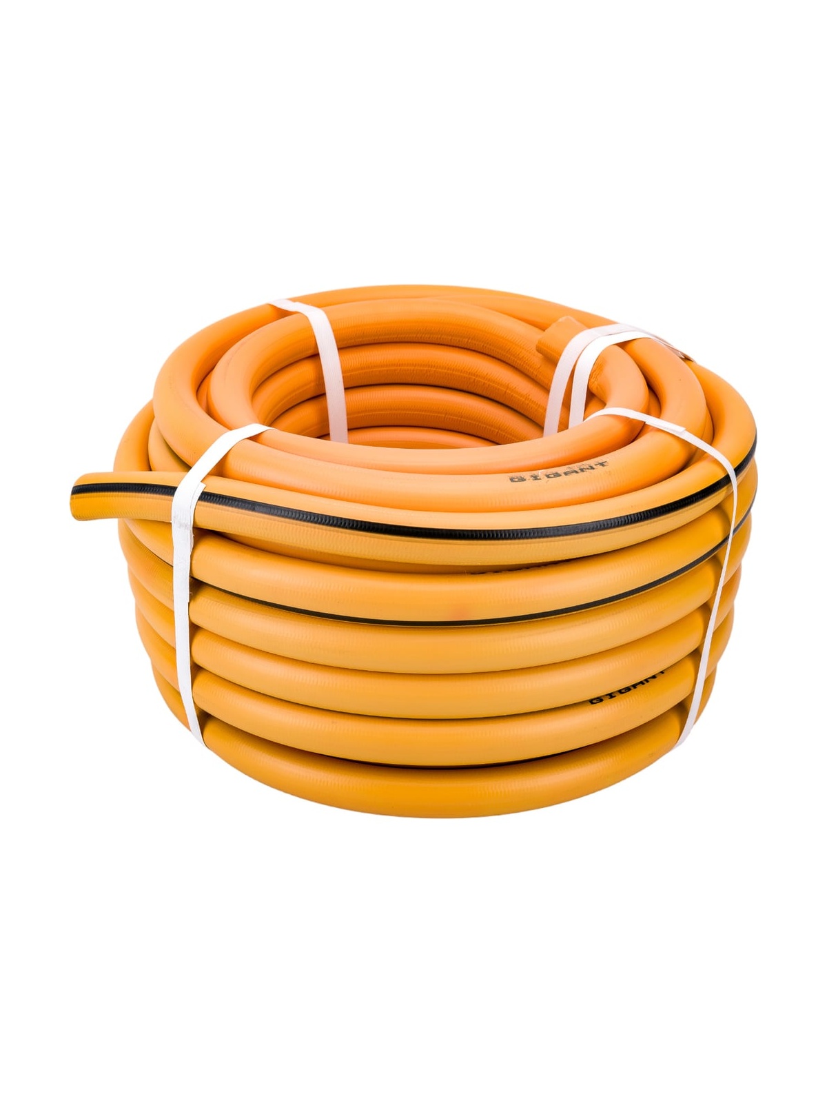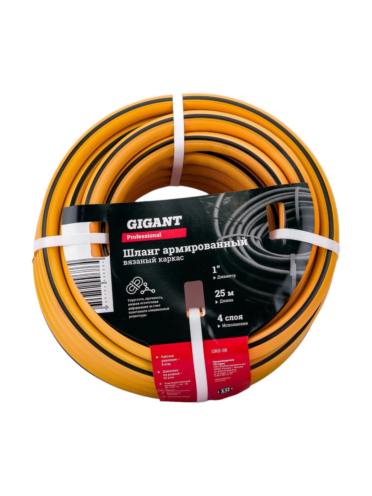 Шланг Gigant с вязаным каркасом имеет армированную конструкцию из ПВХ, отличается низкой остаточной деформацией, упругостью и прочностью за счет пластиката специальной рецептуры. Выдерживает широкий диапазон температур - от -10°С до +60°С и давление до 8 бар. Длина шланга - 25 метров, количество слоев - 4. Шланг подходит для полива дачного или садового участка. Шланг состоит из 4 слоев: первые 2 - из ПВХ, которые придают ему гибкость; третий - из многонитиевого полиэстера - упрочняет конструкцию; четвертый - внутренний стабилизирующий слой. Такое строение увеличивает срок службы шланга. Гладкая поверхность шланга предотвращает его от повреждений и порезов, а также обеспечивает его легкое перемещение на различных неровностях. Яркий цвет шланга позволит ему не затеряться в условиях недостаточной освещенности и в высокой траве на садовом участке. Продукция представлена профессиональными и бытовыми инструментами, имеет доступную цену и высокое качество. При изготовлении товаров Gigant используется современное оборудование и прочные материалы. Производство осуществляется на современных предприятиях России и Азии. Тестирование товаров осуществляется в два этапа, каждая партия инструментов проходит проверку на соответствие стандартам и заявленным техническим характеристикам. Это является залогом качества и надежности готового продукта. Продукция представлена широкой линейкой инструментов. У нас можно приобрести ручной инструмент, строительный, садовый, сантехнический, климатический, крепежный, автогаражный, а также станки, расходные материалы и многое другое.
