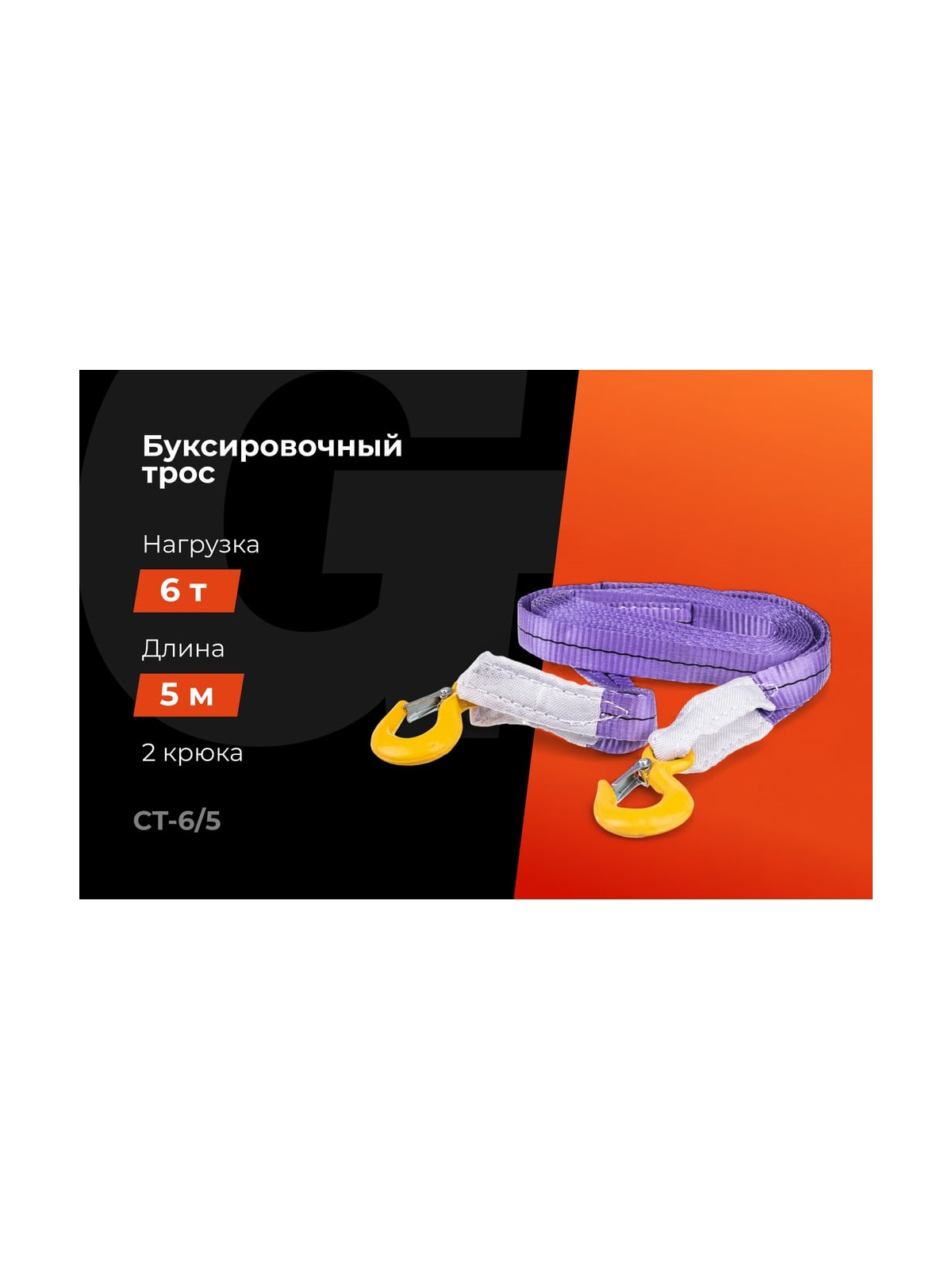 Автомобильный буксир 6Т Gigant CT-6/5 - незаменимое приспособление в багажнике любого автомобиля. Трос позволяет вытягивать застрявшие автомобили из грязи и снега, а также буксировать неисправные транспортные средства. Нагрузка на разрыв составляет 6 тонн. Длина буксира 5 метров отвечает требованиям ПДД РФ. Прочный полиэстер выдерживает значительную нагрузку, а наличие крюков существенно упрощает процесс закрепления. Крепление - на крюках. При выборе троса нужно рассчитывать, что заявленное количество тонн на тросе должно превышать массу машины минимум вдвое. Легковым автомобилям нужен трос на 2,5–4 тонн, внедорожникам — от 5 тонн и выше. Внимание! Цвет буксира может отличаться от изображенного на сайте. Продукция представлена профессиональными и бытовыми инструментами, имеет доступную цену и высокое качество. При изготовлении товаров Gigant используется современное оборудование и прочные материалы. Производство осуществляется на современных предприятиях России и Азии. Тестирование товаров осуществляется в два этапа, каждая партия инструментов проходит проверку на соответствие стандартам и заявленным техническим характеристикам. Это является залогом качества и надежности готового продукта. Продукция представлена широкой линейкой инструментов. У нас можно приобрести ручной инструмент, строительный, садовый, сантехнический, климатический, крепежный, автогаражный, а также станки, расходные материалы и многое другое.