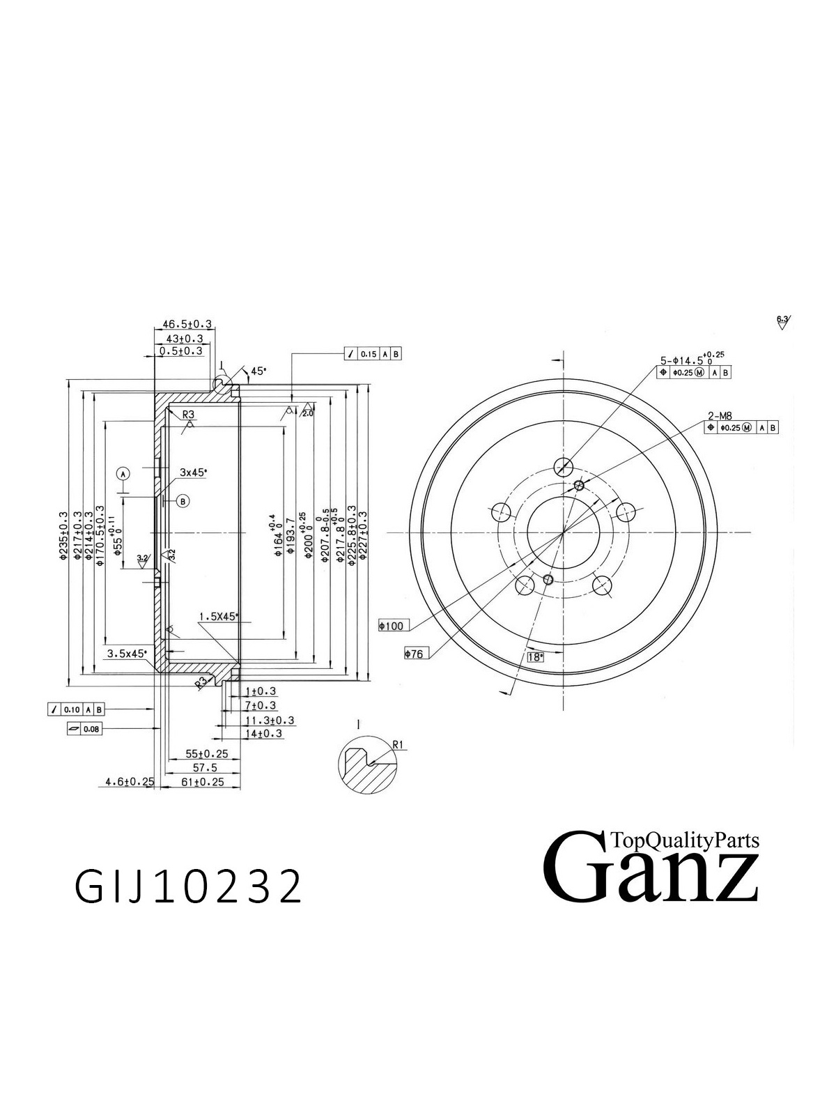 Барабан тормозной для TOYOTA Carina E(T19)1.6-2.0D 92-97 / (200x55) GANZ GIJ10232.
