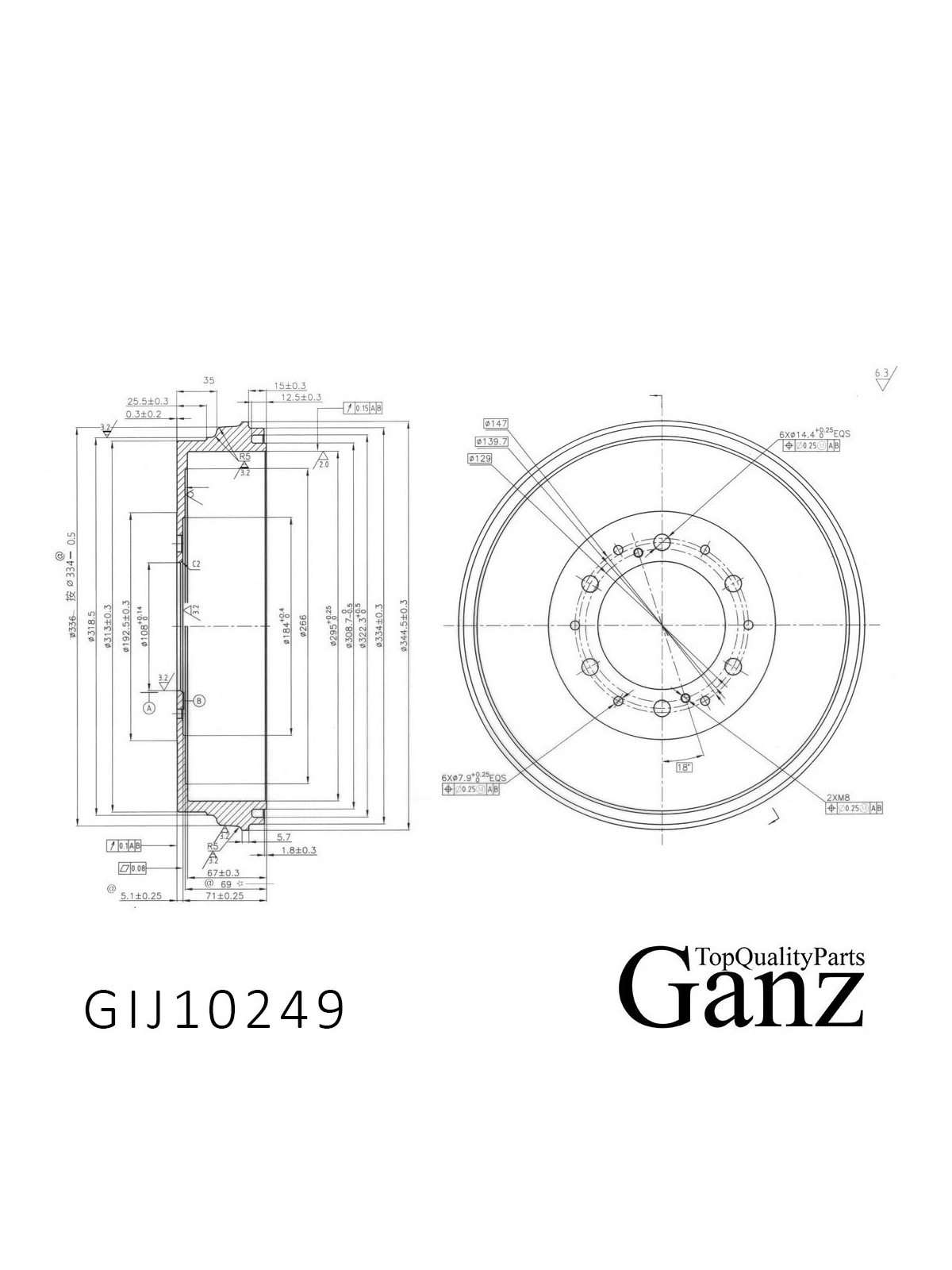 Барабан тормозной TOYOTA HiLux 2005-> /D=295mm GANZ GIJ10249.