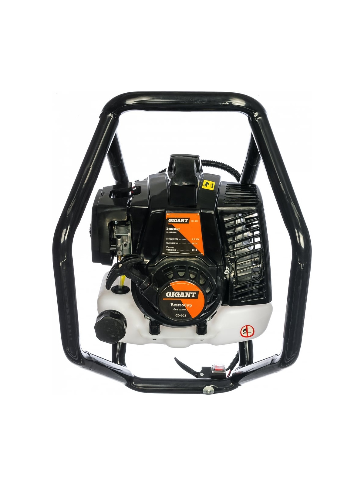 Бензобур Gigant позволит создавать отверстия в грунте и во льду глубиной до 80 см. Двухтактный двигатель объемом 68 куб.см. отличается повышенной надежностью, обеспечивает эффективную работу, экономичный расход топлива и продолжительный срок эксплуатации. Мощность двигателя 2,2 кВт позволяет устанавливать буры диаметром до 300 мм. Двигатель оснащен воздушным охлаждением для возможности продолжительной работы без перегрева. Специальная конструкция рамы способствует равномерному распределению центра тяжести при бурении. Бензобур предназначен для создания скважин, лунок для зимней рыбалки, оснований для посадки деревьев или установки забора. Инструмент работает на смеси бензина АИ-92 и двухтактного масла в пропорции 25:1. Подготовка к работе: Оценка грунта: Определите тип и плотность почвы. Мягкий грунт - полная мощность, твердый – бурение с осторожностью. Особое внимание при промерзшей земле и твердых включениях. Выбор оснастки: Подбирайте шнек под тип грунта (мягкий, твердый, каменистый) и удлинитель исходя из необходимой глубины и надежности. Климатические условия: Учитывайте влияние низких температур и высокой влажности. Процесс бурения: Начало работы: Начинайте на малых оборотах, плавно погружая шнек. При перегрузке уменьшите давление или увеличьте обороты. Бурение твердых грунтов: Бурите небольшими участками, очищайте шнек. При препятствиях - измените угол бурения или попробуйте в другом месте. Используйте технику "простукивания", при необходимости - предварительно разрыхлите грунт. Использование удлинителя: Убедитесь в надежности крепления удлинителя. Бурите в несколько этапов, не допускайте перекосов. Регулярно проверяйте сварные швы. Извлечение шнека: Извлекайте плавно. Если заклинило - вращайте в обратном направлении или разрыхлите грунт. Меры предосторожности: Убедитесь в отсутствии подземных коммуникаций. Используйте защитные очки и перчатки. Не допускайте закусывания и заклинивания в процессе работы. Регулярно проводите техобслуживание. Не превышайте рекомендованную глубину. Очищайте и смазывайте оборудование после работы. Храните в сухом месте.