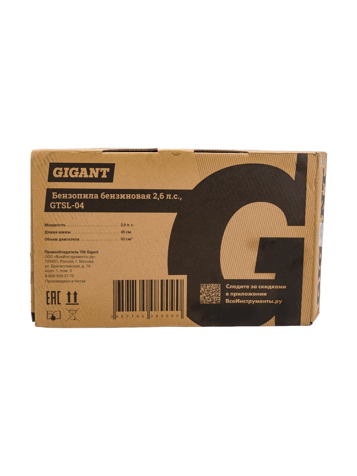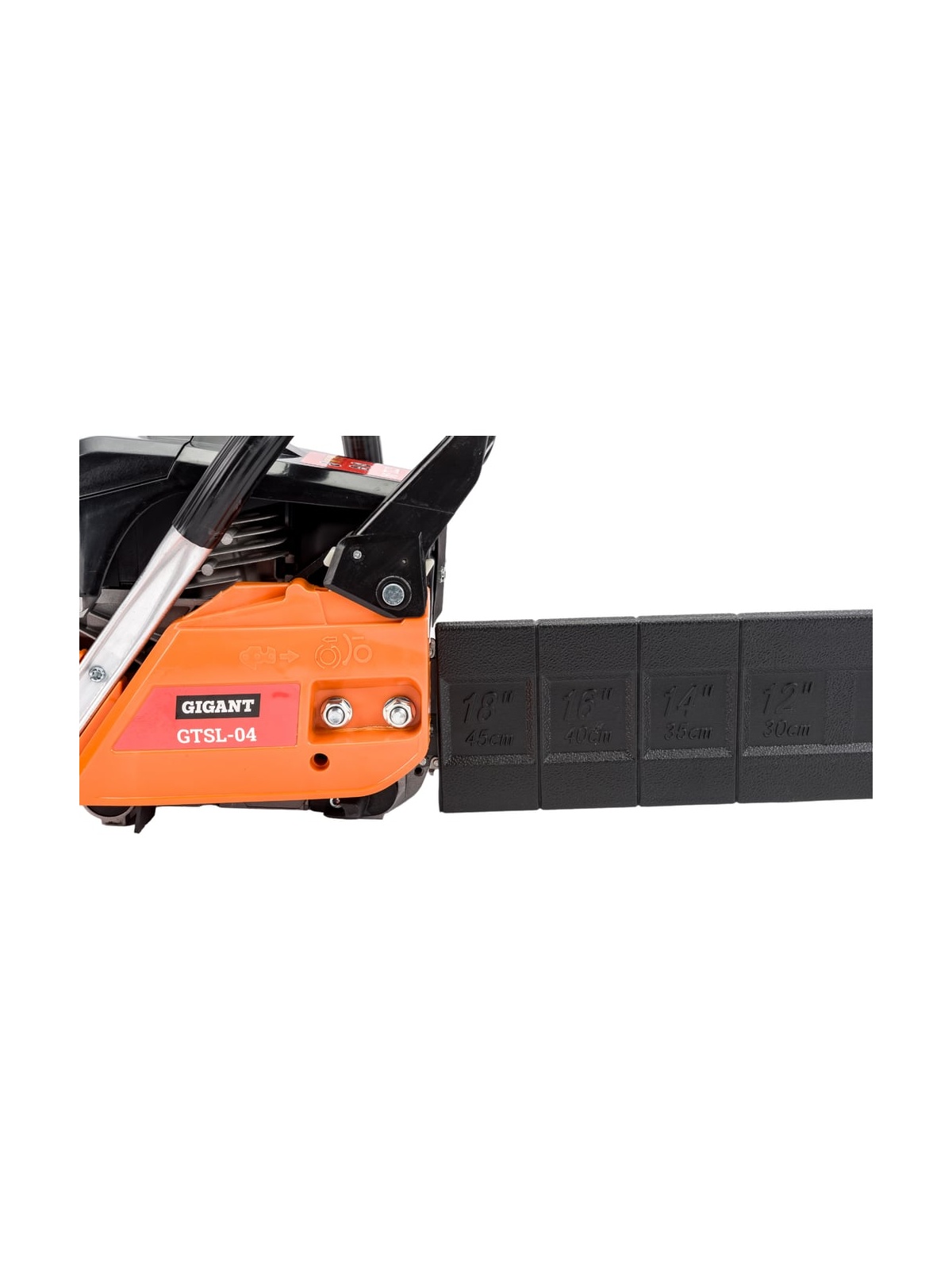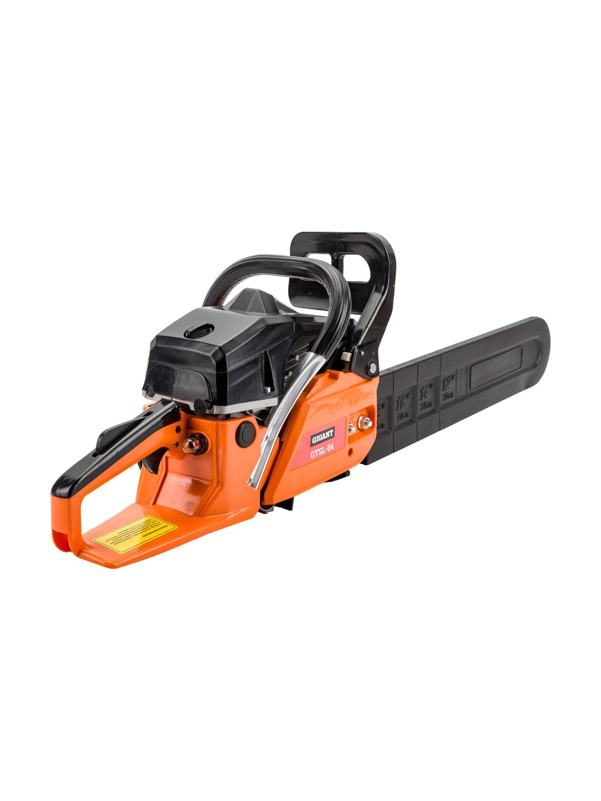 Бензопила Gigant GTSL-04 - бытовой инструмент, предназначенный для распиливания древесных материалов. Задняя рукоятка и дополнительная рукоятка гарантируют полный контроль над инструментом. Безопасная работа. При нажатии на передний упор срабатывает тормоз и пильная цепь моментально останавливается. Обладает антивибрационной системой, что создает комфорт оператора при работе. Праймер (насос для подкачки топлива) облегчает запуск холодного двигателя.