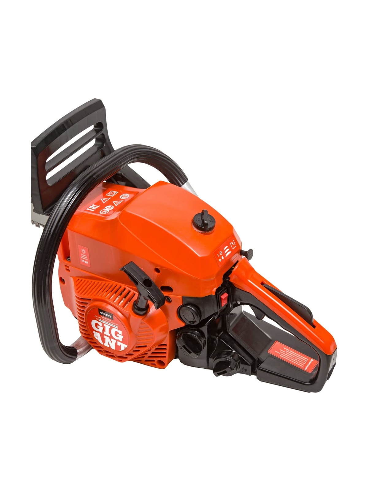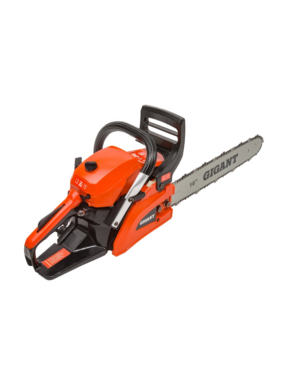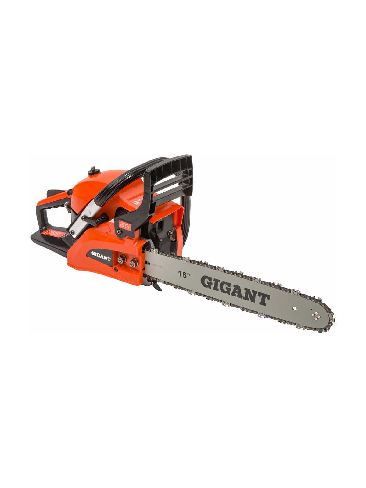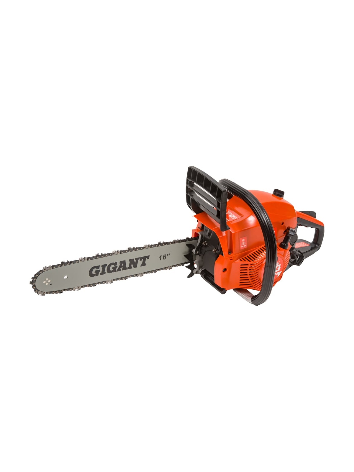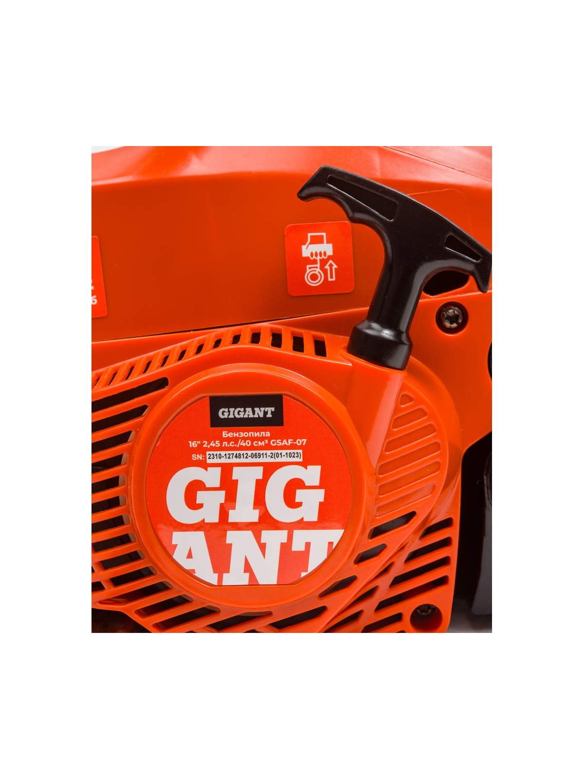 Бензопила Gigant 16" 2,45 л.с./40 см3 GSAF-07 предназначена для пиления древесины, с её помощью можно заготовить дрова, спилить упавшее дерево, обрезать толстые ветки деревьев. Эта ручная цепная пила с двигателем внутреннего сгорания - необходимый инструмент для дачников и владельцев частного дома. Одноцилиндровый 2-х тактный двигатель легко заводится и охлаждается потоком воздуха. Улавливатель цепи и инерционный тормоз снижают вероятность травмы оператора при отскоке инструмента или обрыве цепи. Подогрев камеры воздушного фильтра и карбюратора обеспечивает стабильную работу в холодных условиях.