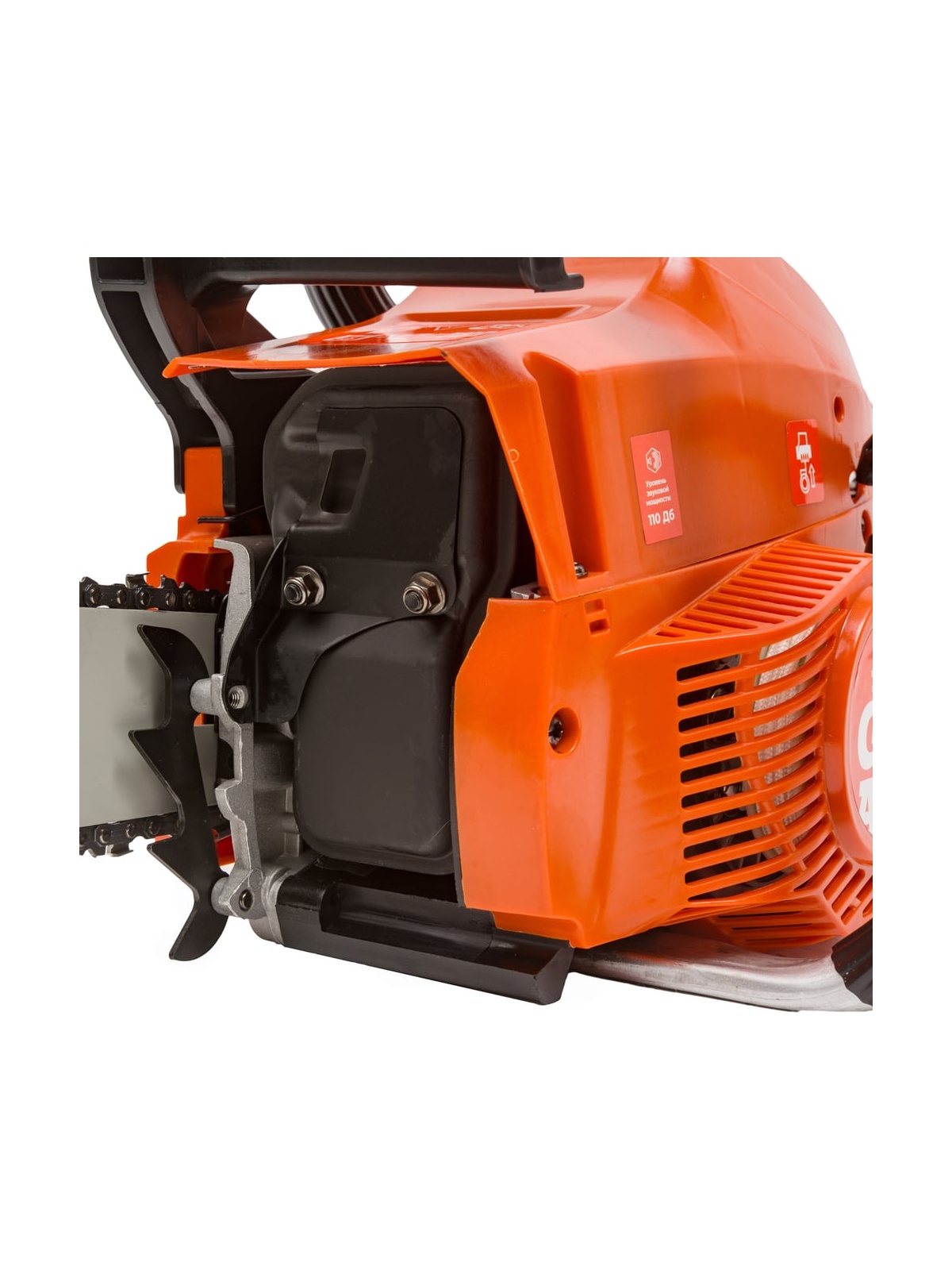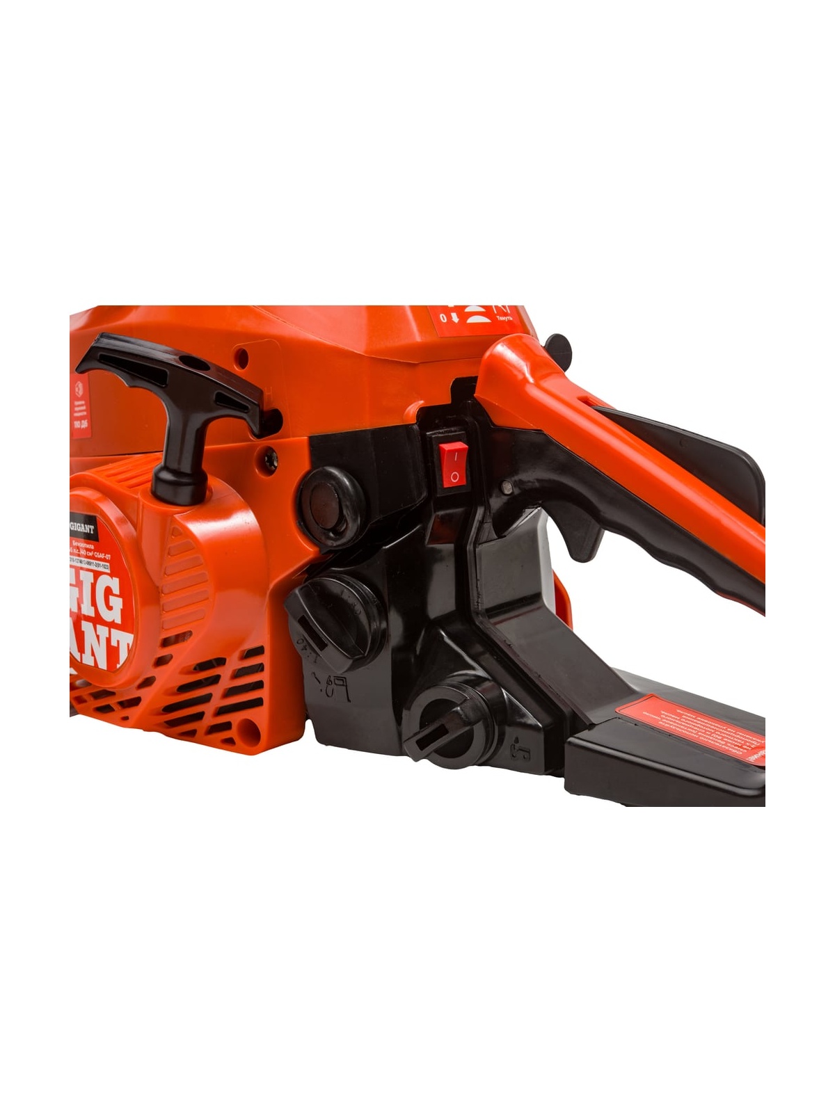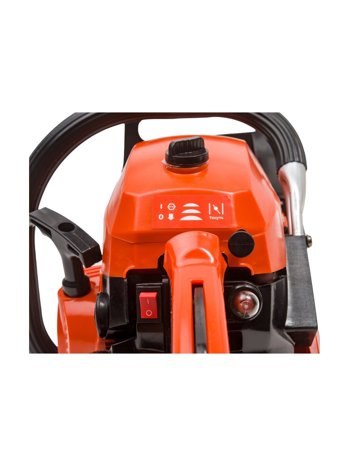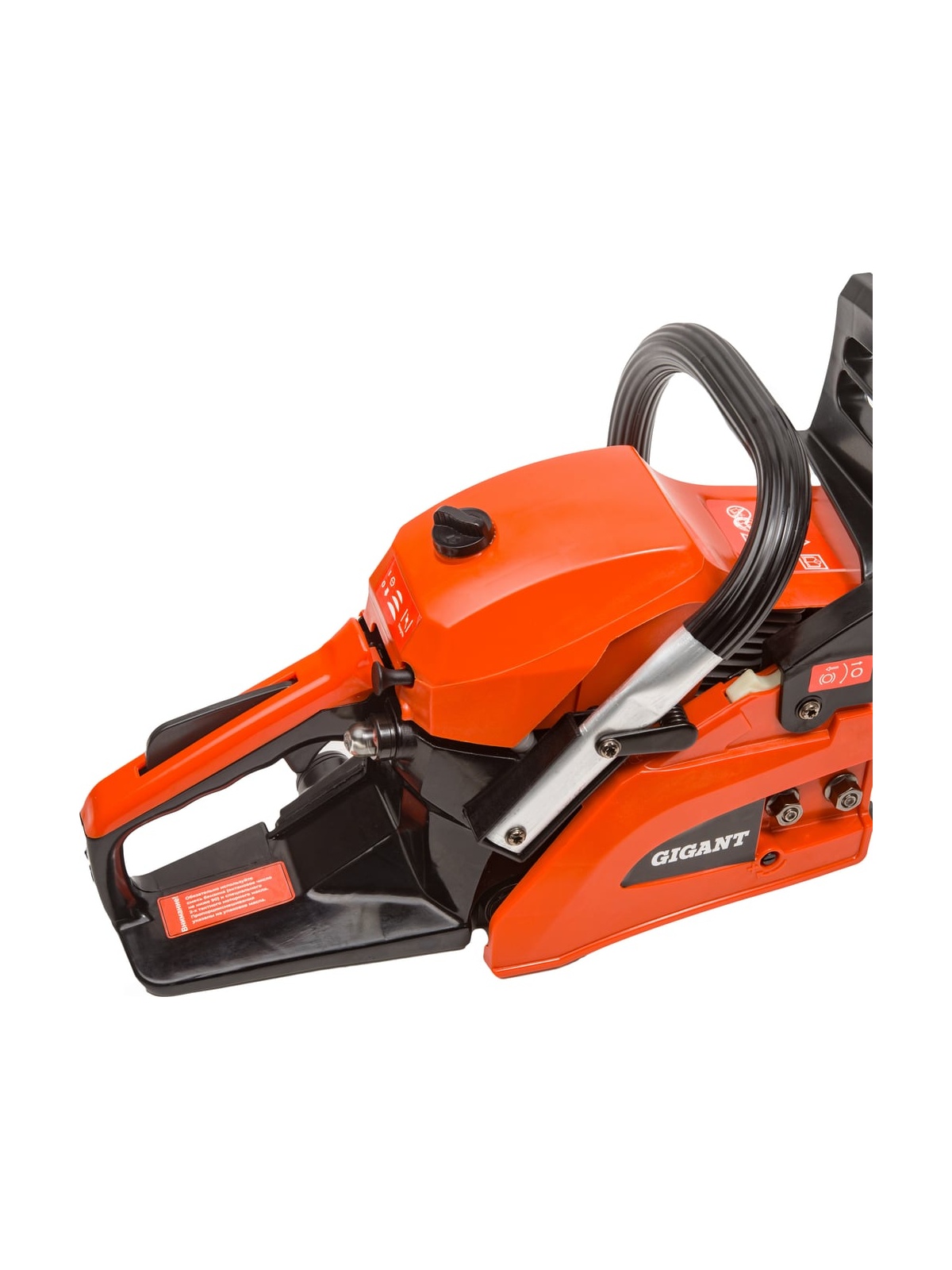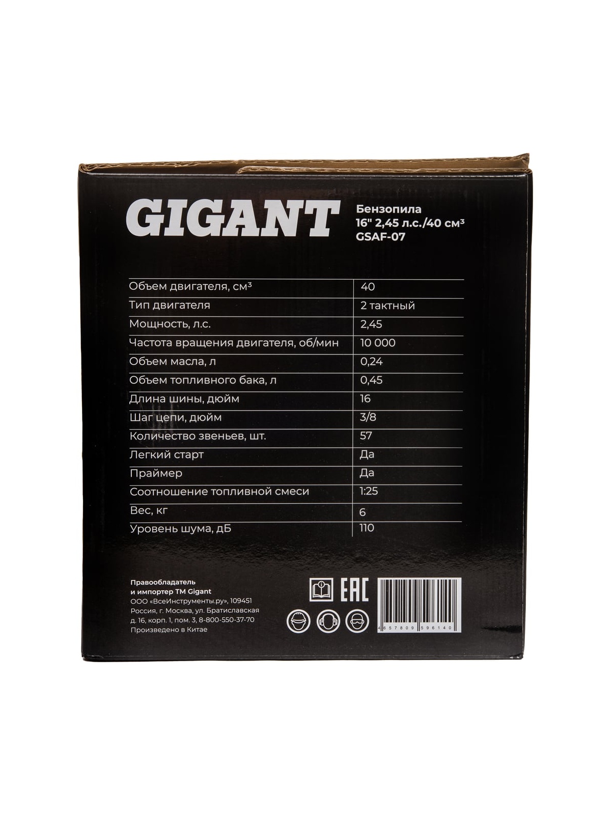 Бензопила Gigant 16" 2,45 л.с./40 см3 GSAF-07 предназначена для пиления древесины, с её помощью можно заготовить дрова, спилить упавшее дерево, обрезать толстые ветки деревьев. Эта ручная цепная пила с двигателем внутреннего сгорания - необходимый инструмент для дачников и владельцев частного дома. Одноцилиндровый 2-х тактный двигатель легко заводится и охлаждается потоком воздуха. Улавливатель цепи и инерционный тормоз снижают вероятность травмы оператора при отскоке инструмента или обрыве цепи. Подогрев камеры воздушного фильтра и карбюратора обеспечивает стабильную работу в холодных условиях.