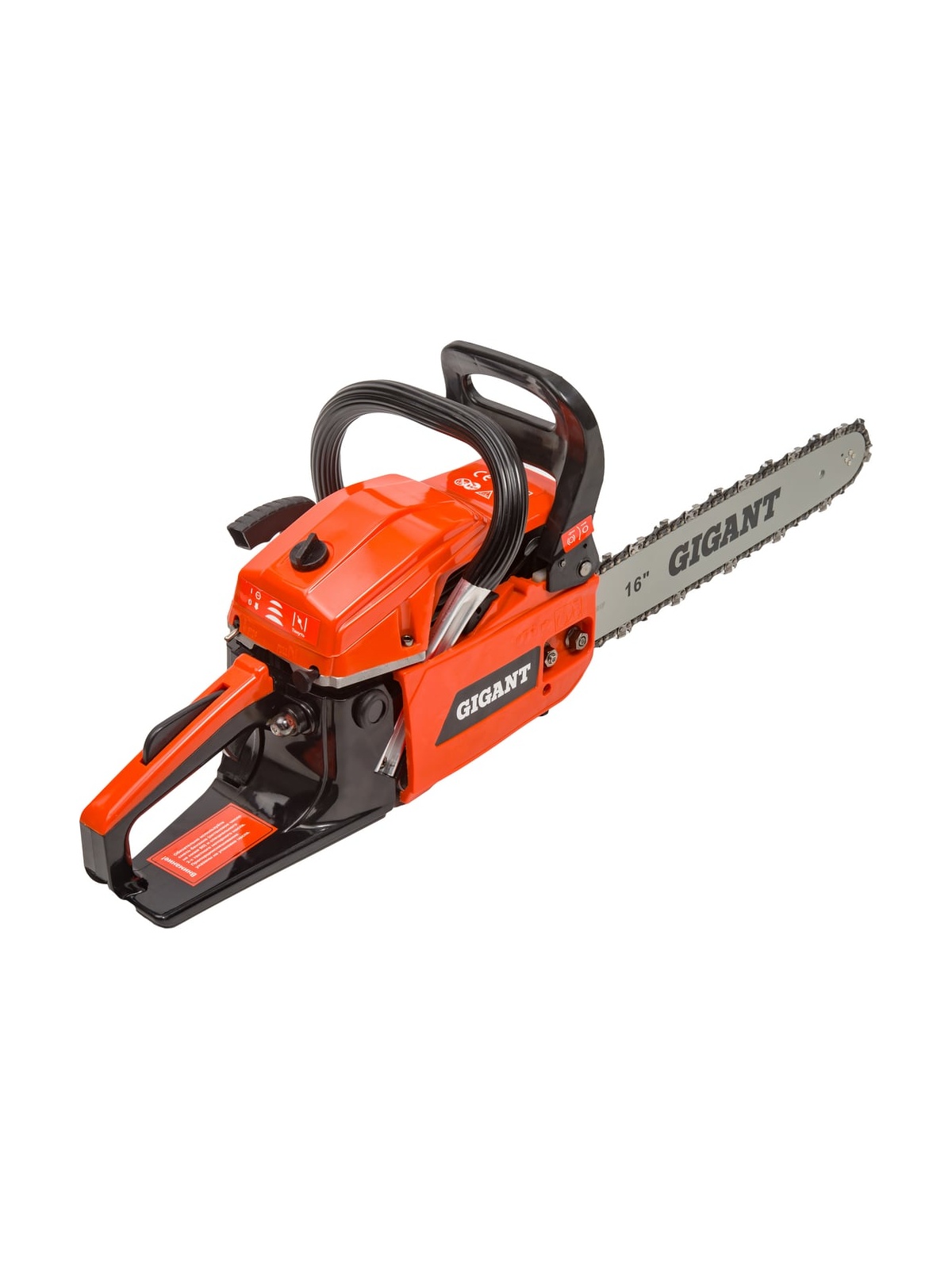 Бензопила Gigant 16" 3,1 л.с./45 см3 GSAF-09 - это цепная пила, работающая на основе двухтактного бензинового двигателя объемом 45 см³, мощностью 3,1 л.с. Модель подойдет для простых бытовых задач, таких как распиловка веток и бруса. Бензопила значительно улучшает процесс распила древесины, незаменима в рубке деревьев и заготовке дров. Модель имеет компактную шину 400 мм, толщина звена: 1,3 мм, шаг цепи: 0,325. При её изготовлении основной упор делался на безопасность владельца, поэтому бензопила оснащена тормозом цепи, который защитит пользователя от отскока пилы. Бензопила удобна в использовании, поддерживает систему облегченного запуска «Легкий старт», заводится при минимальных усилиях. Наличие системы амортизации из трех демпфирующих втулок снижает уровень вибраций при работе двигателя. Карбюратор отличается простым регулированием, для настройки оборотов достаточно использовать отвертку. Закачка топлива в карбюратор происходит с помощью ручного топливного насоса (праймера). Улучшенный масляный насос подает специальное цепное масло, которое облегчает скольжение цепи и не дает металлическим деталям перегреваться от трения во время работы. Емкость бака смазки цепи: 260 мл. Устройство оснащено вместительным топливным баком емкостью 550 мл.