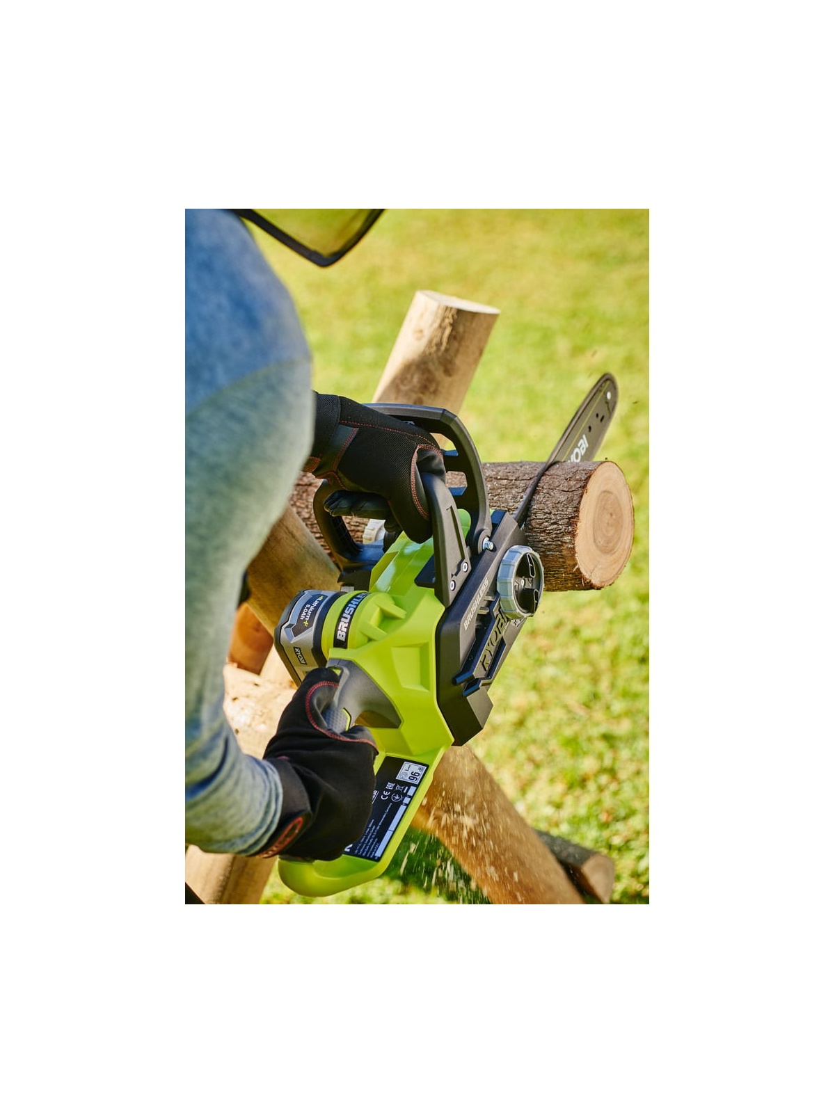 Бесщеточная аккумуляторная цепная пила Ryobi ONE+ OCS1830 5133002829 предназначена для валки деревьев, распиловки бревен, удаления сучьев с поваленного дерева. Работает на литий-ионном аккумуляторе напряжением 18 В. Производит меньше шума при работе и не загрязняет окружающую среду. Отличается небольшим весом, что упрощает пользование пилой.