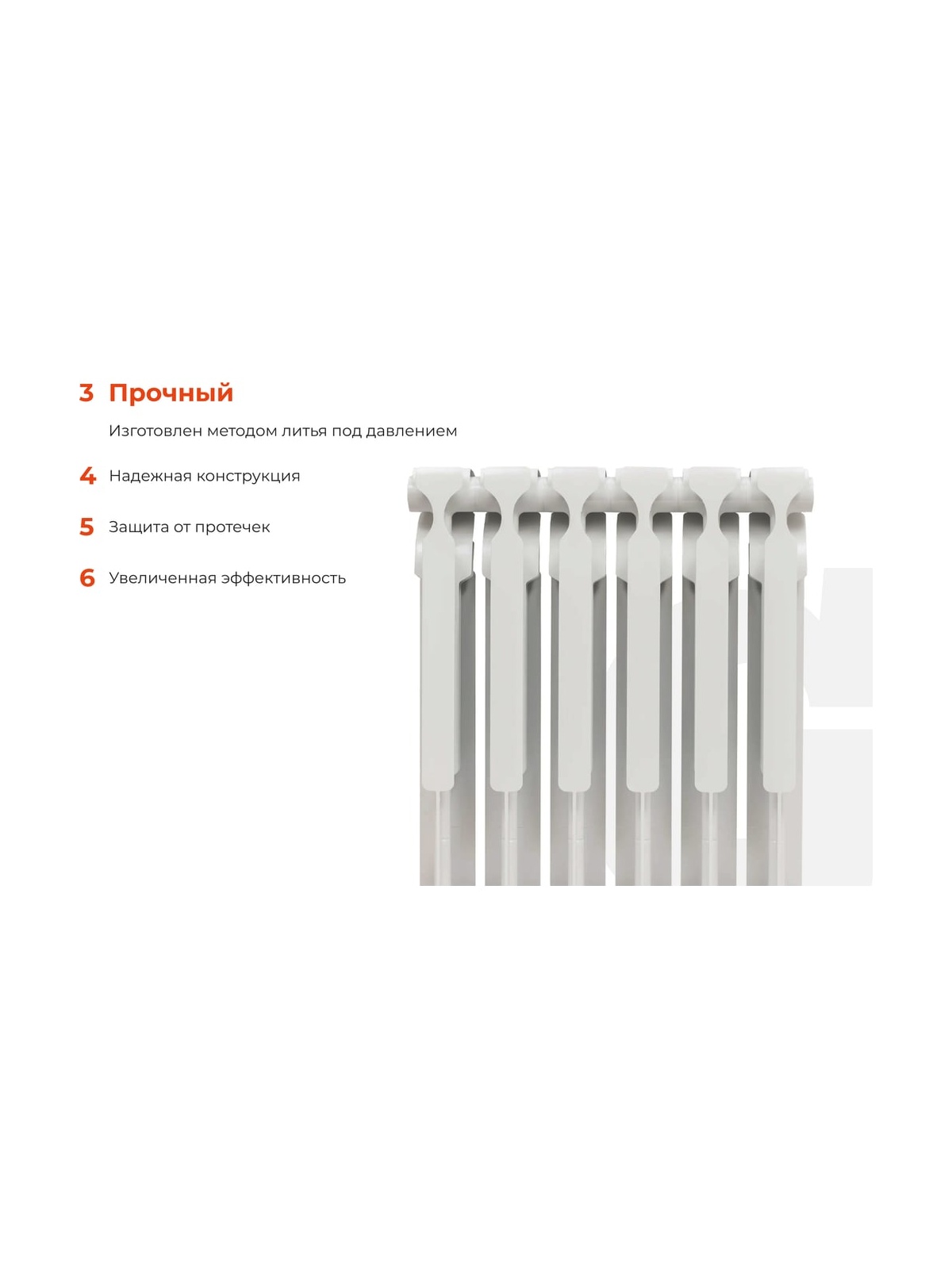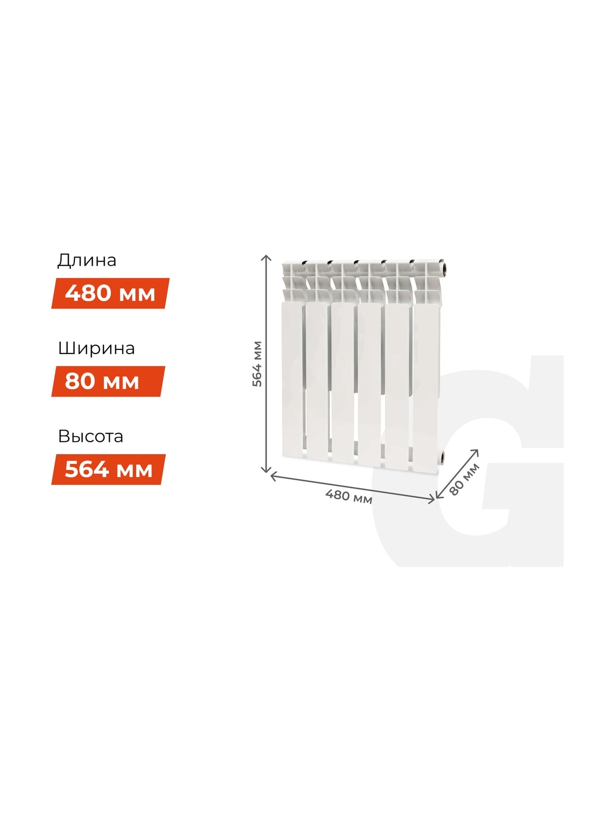 Биметаллический радиатор bim 500/80 6 секций Gigant GRBM58-6 - современный отопительный прибор, который можно установить как в небольшом загородном доме с собственным котлом, так и подключенной к тепловым сетям «многоэтажке». Особая волнообразная форма оребрения повышает теплоотдачу на 3% за счет беспрепятственного прохождения нагреваемого воздуха при движении внутри радиатора. Дополнительное оребрение на вертикальном коллекторе секции увеличивает теплоотдачу радиатора на 5%. Такое решение способствует более быстрому обогреву помещений при том же размере и весе секций. Применение полностью стального закладного элемента, выполненного из углеродистой стали марки 20, которая отличается повышенной коррозионной стойкостью и эксплуатационной надежностью. Гарантирует надежную работу в системах, подверженных гидроударам и с химически агрессивными теплоносителями (в том числе антифризами).