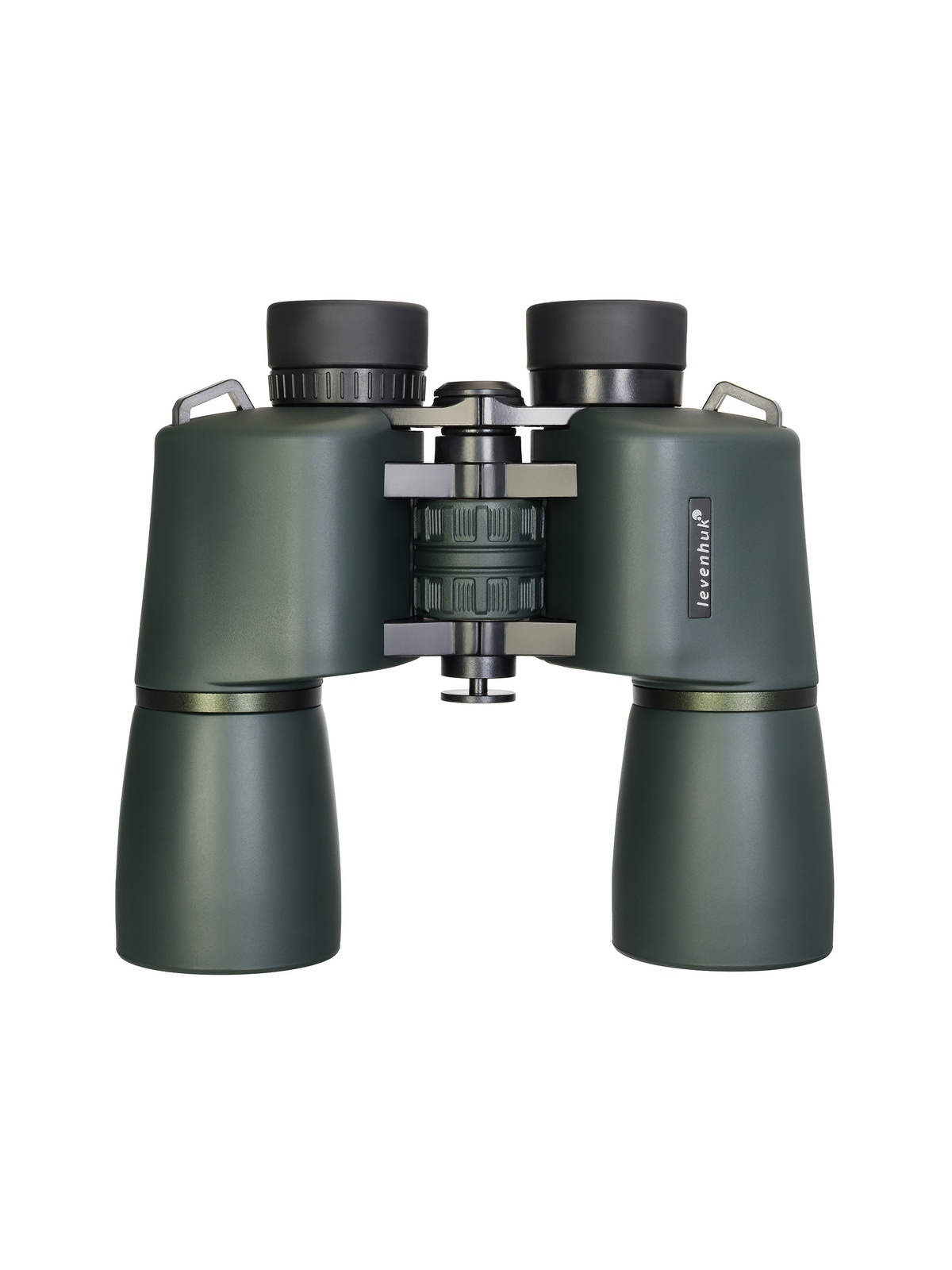 Корпус бинокля выполнен из сверхпрочного алюминиевого сплава (дюраля) и имеет резиновое покрытие для крепкости хвата. Его герметичность соответствует маркировке IP67: прибору не страшен ни дождь, ни пыль, ни падение в воду. Азотное заполнение позволяет оптике не запотевать при перепаде температуры - обзор останется ясным при любых обстоятельствах. Прибор удобно носить на ремешке, а при транспортировке его можно убрать в сумку, защитив оптику специальными крышками - все указанные аксессуары входят в комплектацию, причем крышки объективов уже прикреплены к корпусу.