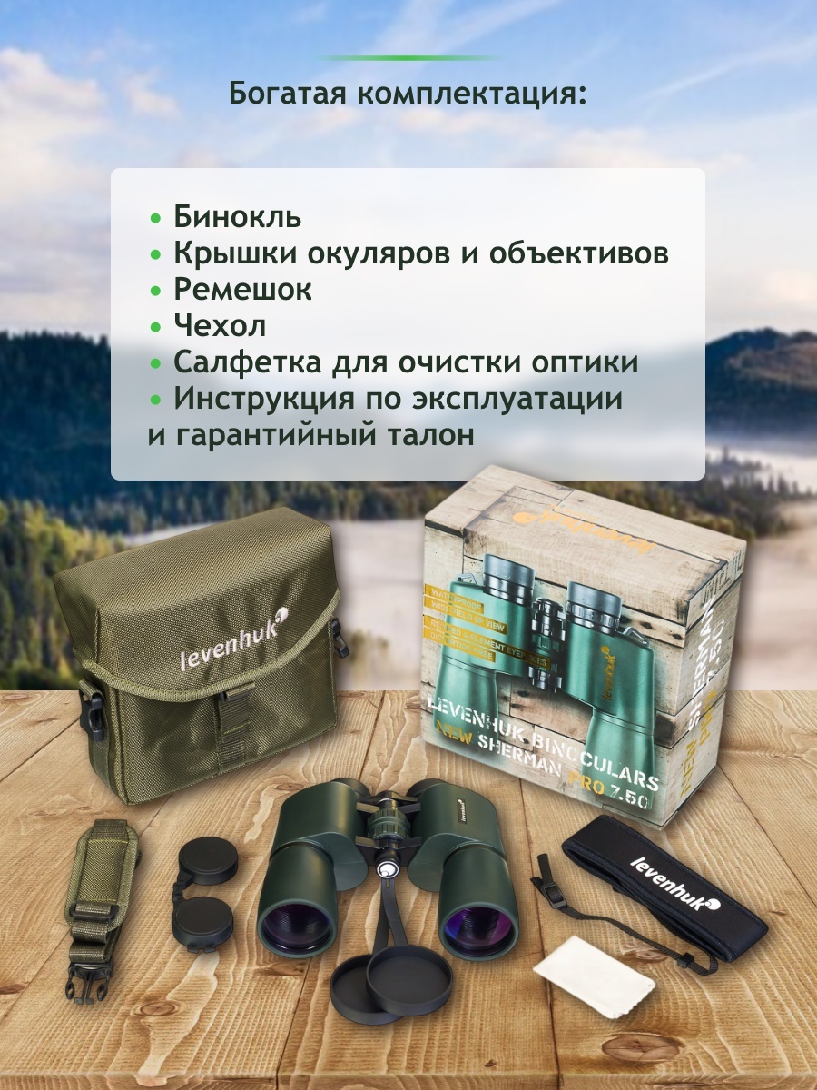 Тем, кто находится в поисках надежного бинокля с оптикой высокого качества, стоит обратить внимание на New Sherman PRO 7x50. Этот 7-кратный прибор собран по призменной схеме Porro и обладает крупной апертурой - это обеспечивает хорошее светопропускание, в результате чего пользователь имеет возможность наслаждаться ясной и четкой картинкой даже в условиях слабого освещения. Многократно просветленная оптика создана из стекла с высоким преломлением марки BaK-4 - выбор этого материала также объясняется стремлением к впечатляющему качеству красочного и детализированного изображения. Поле зрения составляет 123 м на расстоянии 1000 м, что является отличным показателем для наблюдений за движущимися объектами.