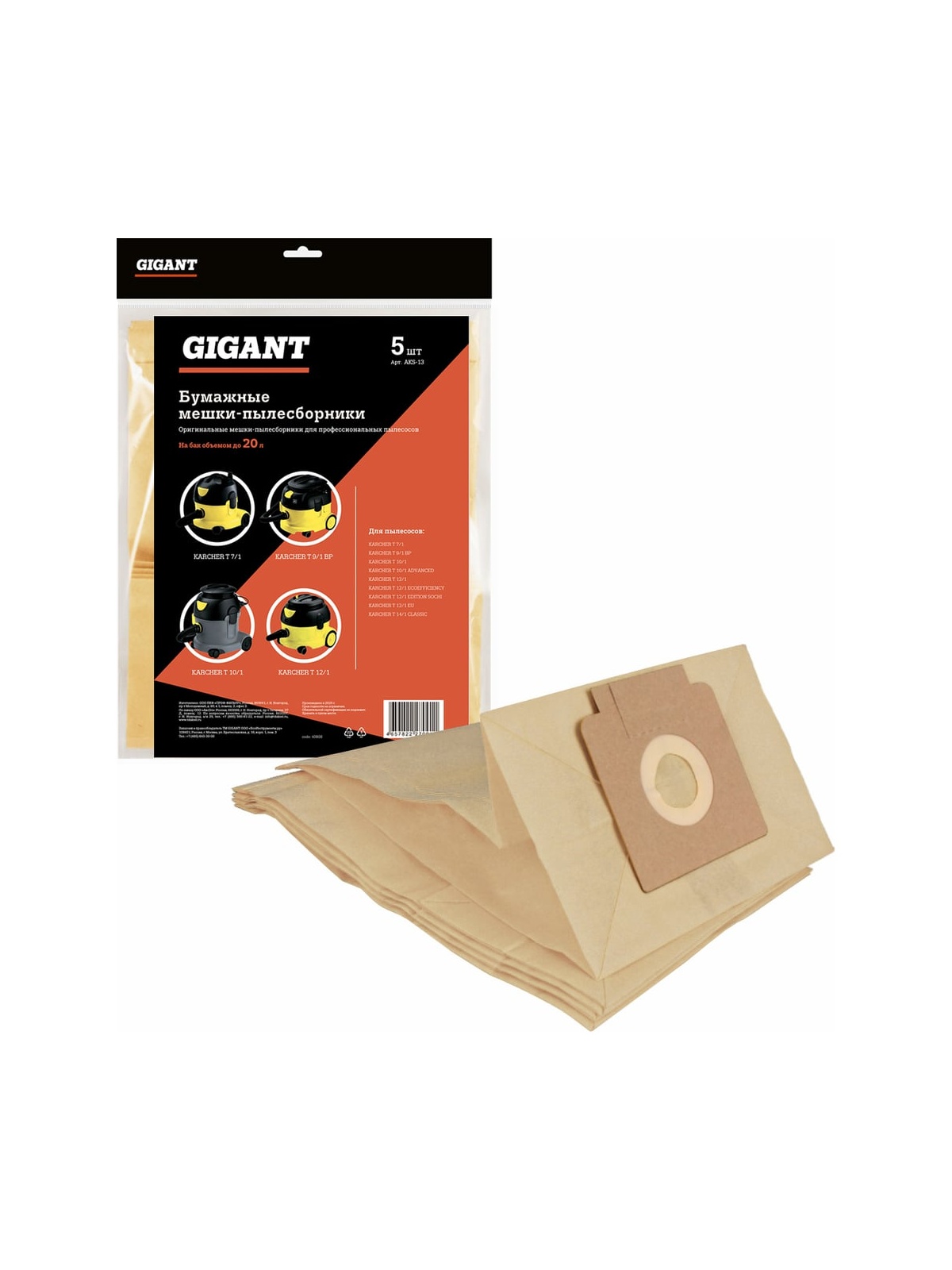Бумажные Пакеты-мешки для Т 7/1,10/1 5шт Gigant AKS-13 - это двухслойные мешки, которые изготовлены из фильтровальной многослойной неотбеленной бумаги, позволяющей проводить фильтрацию воздуха очень высокой степени очистки. Внутренний слой мешка ограничивает непосредственно саму пыль и мелкий мусор, наружный слой задерживает мельчайшие аллергенные пылевые частицы, тем самым сохраняя ваше здоровье и продлевая срок службы агрегатов пылесоса. Мешки удобны для замены и экологичны при утилизации. В упаковке 5 штук.