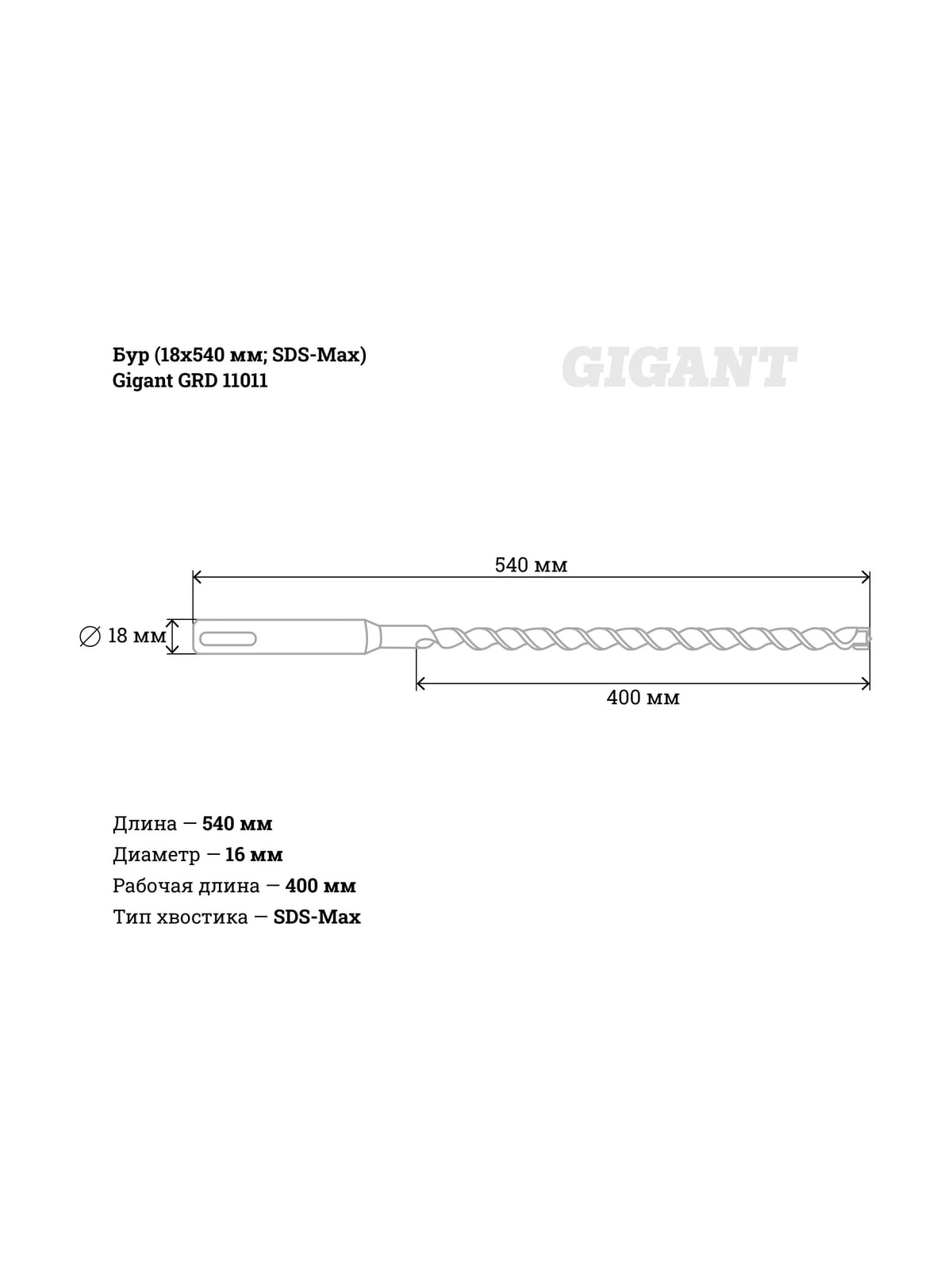 Бур Gigant GRD 11011 используется в перфораторах с типом крепления SDS-Max для сверления отверстий в бетоне, кирпичной кладке, камне, граните. Длина бура - 540 мм, диаметр - 18 мм. Внимание, изображение товара может отличаться от реального! Верные параметры указаны в технических характеристиках товара. Две широкие одинарные спирали для наилучшего отвода шлама из отверстия. Четырехгранная рабочая часть быстро и эффективно сверлит прочные материалы. Бур подходит для интенсивных нагрузок. Продукция представлена профессиональными и бытовыми инструментами, имеет доступную цену и высокое качество. При изготовлении товаров Gigant используется современное оборудование и прочные материалы. Производство осуществляется на современных предприятиях России и Азии. Тестирование товаров осуществляется в два этапа, каждая партия инструментов проходит проверку на соответствие стандартам и заявленным техническим характеристикам. Это является залогом качества и надежности готового продукта. Продукция представлена широкой линейкой инструментов. У нас можно приобрести ручной инструмент, строительный, садовый, сантехнический, климатический, крепежный, автогаражный, а также станки, расходные материалы и многое другое.