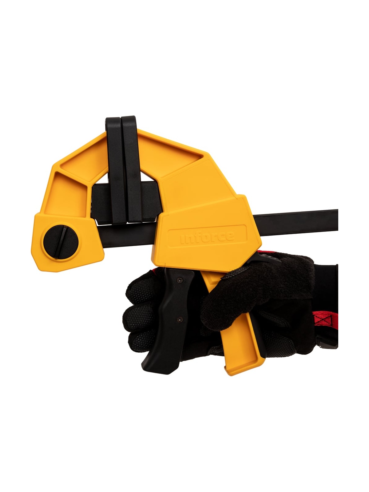Быстрозажимная струбцина 90х450мм Inforce 06-03-23 удобен в работе с различными материалами. При необходимости можно без труда сменить накладные губки для лучшего качества сжатия. Инструмент удобен для ладони, не вызывает усталости и существенно упрощает работу техника, слесаря и других специалистов. Переставная конструкция позволяет использовать инструмент как для зажима, так и для распора.