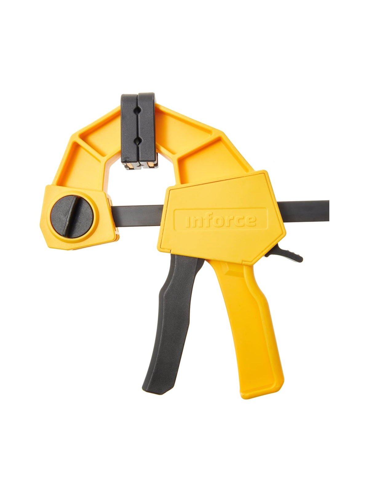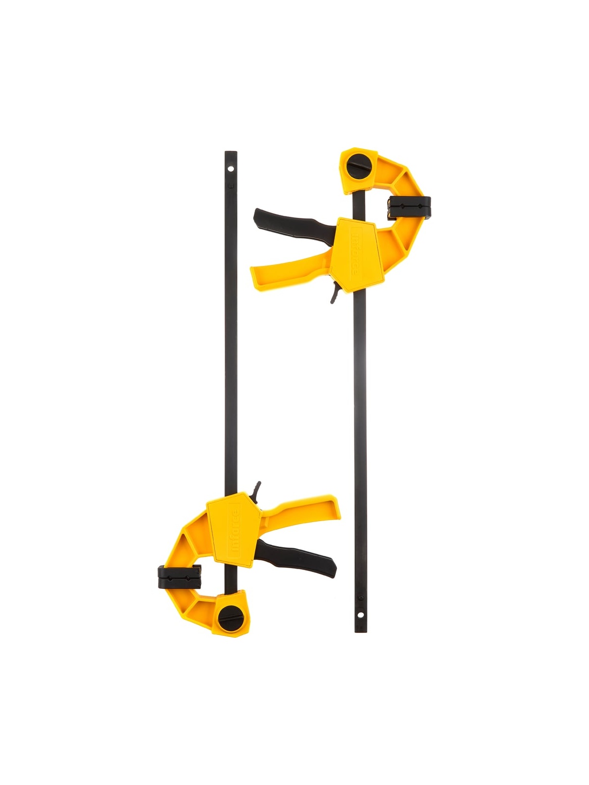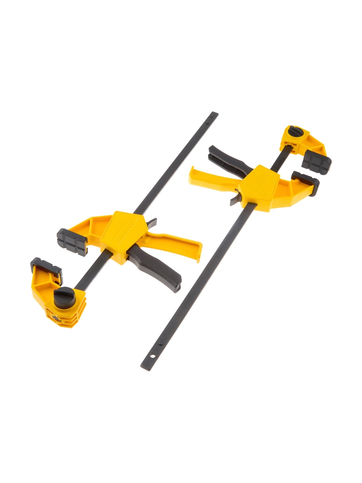 Быстрозажимные струбцины Inforce 60x300 мм, 2 шт. 06-03-34-2 оснащаются удобной курковой системой быстрого спуска и широкими губками, которые равномерно распределяют давление до 63 килограммов. Инструмент оптимален для проведения работ по деревообработке. Благодаря прочной конструкции струбцины отличаются надежностью и долговечностью.