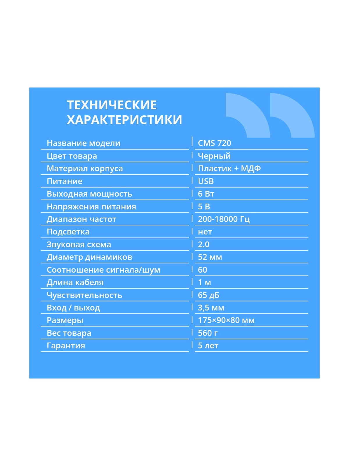 CBR CMS 720, Акустическая система 2.0, питание USB, 2х3 Вт (6 Вт RMS), материал корпуса пластик, 3.5 мм линейный стереовход, цвет чёрный