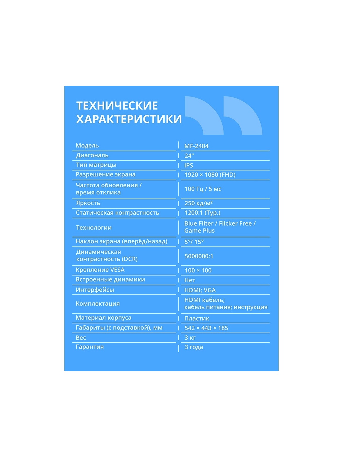 CBR LCD Монитор 23.8" MF-2404, IPS, FHD 1920x1080, 100Гц, 1*HDMI/1*VGA, внутренний БП, черный, кабель HDMI 1.5м [LCD-MF2404-OPC]