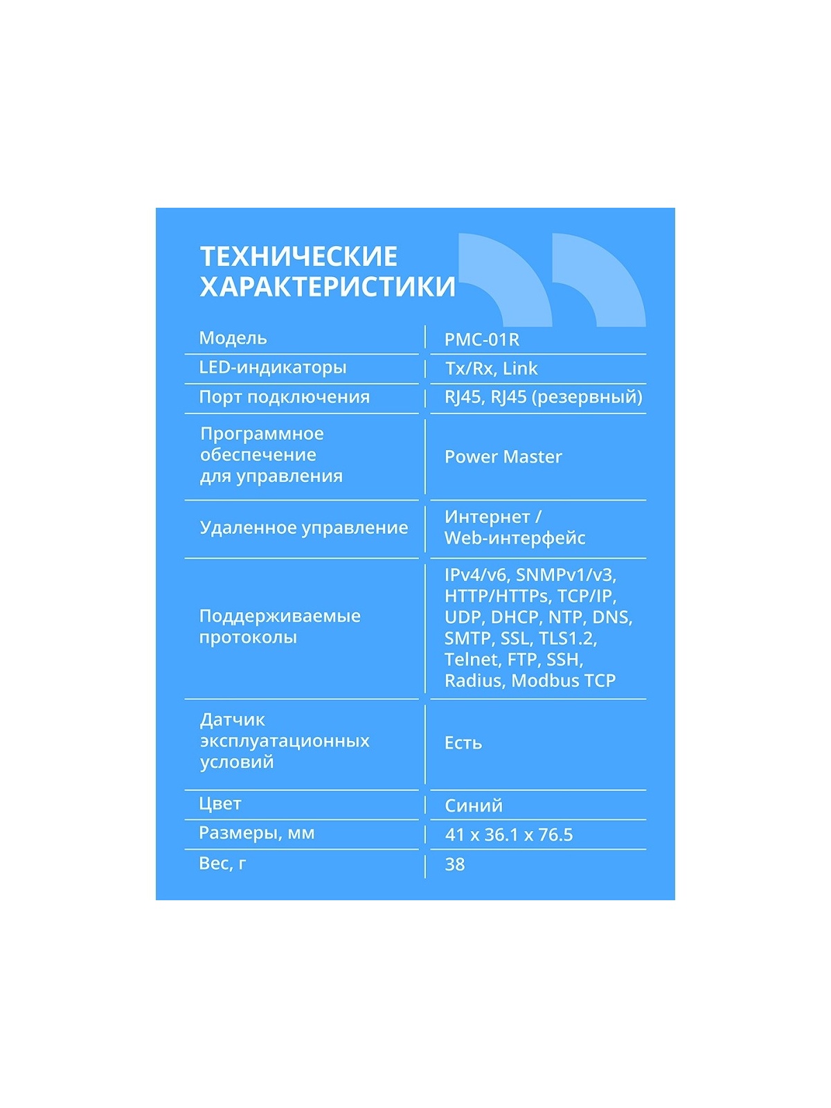CBR PMC-01R [SNMP карта для удаленного управления по сети Ethernet c Русским интерфейсом, 2xRJ45, PowerMaster]