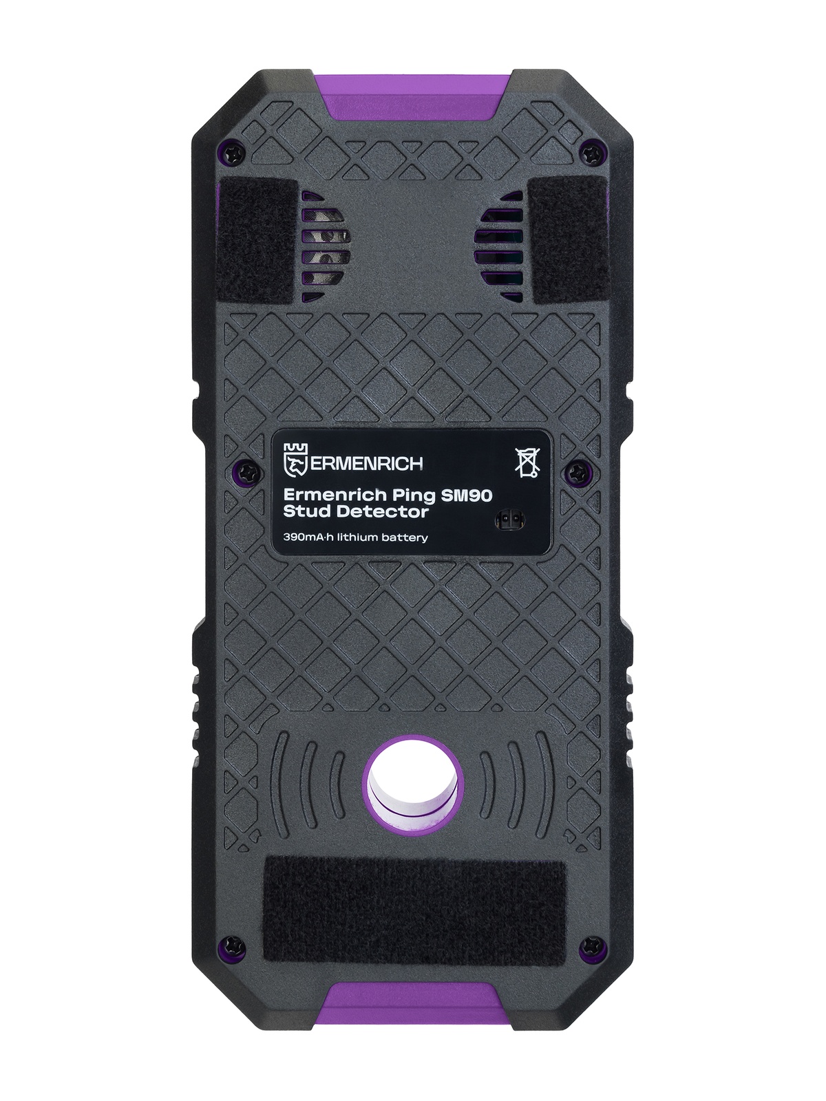 Ermenrich Ping SM90 – многофункциональное устройство для обнаружения скрытых проводов под напряжением, труб, деревянных и металлических конструкций, а также для измерения длины и уровня. Детектор показывает наличие проводов на глубине до 55 мм, конструкций на глубине до 38 мм. Черные металлы обнаруживаются не глубже 100 мм, цветные – 120 мм. Тестер можно использовать как для домашнего ремонта, так и для профессиональных строительно-монтажных работ.