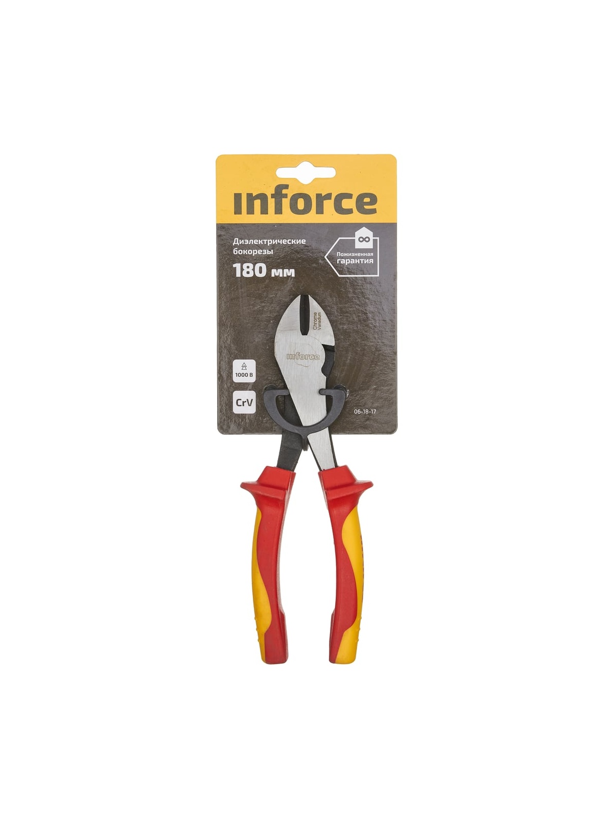 Диэлектрические бокорезы Inforce 180мм 1000В 06-18-17 используется для ручной резки проводов, проволоки и тонких прутков при работе на установках под высоким напряжением. Инструмент прошел самые сложные испытания на качество и стойкость к пробою, благодаря чему обеспечивается повышенная надежность и безопасность процесса проведения рабочих операций.