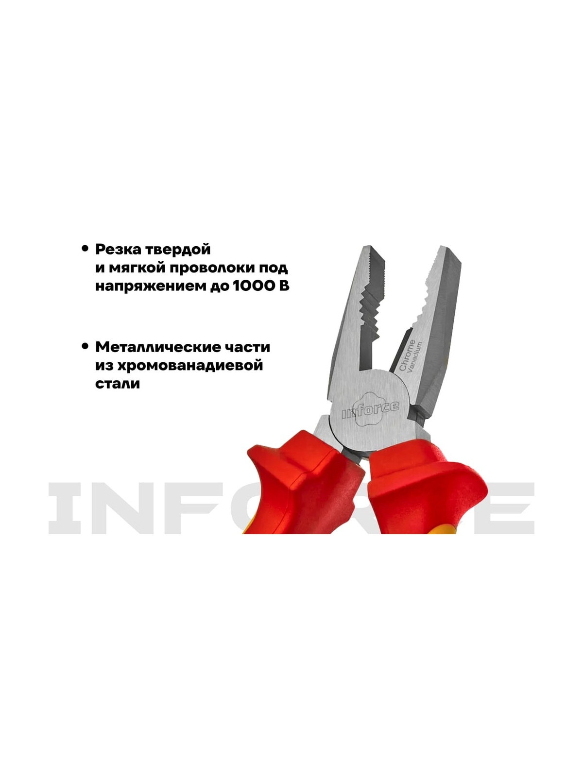 Диэлектрические пассатижи Inforce 180мм 1000В 06-18-19 используются для ручных столярно-слесарных операций. Благодаря высококачественной изоляции манипуляции можно проводить под напряжением до 1000 В. Инструмент изготовлен из прочных и надежных материалов, прослужит очень долгий срок.