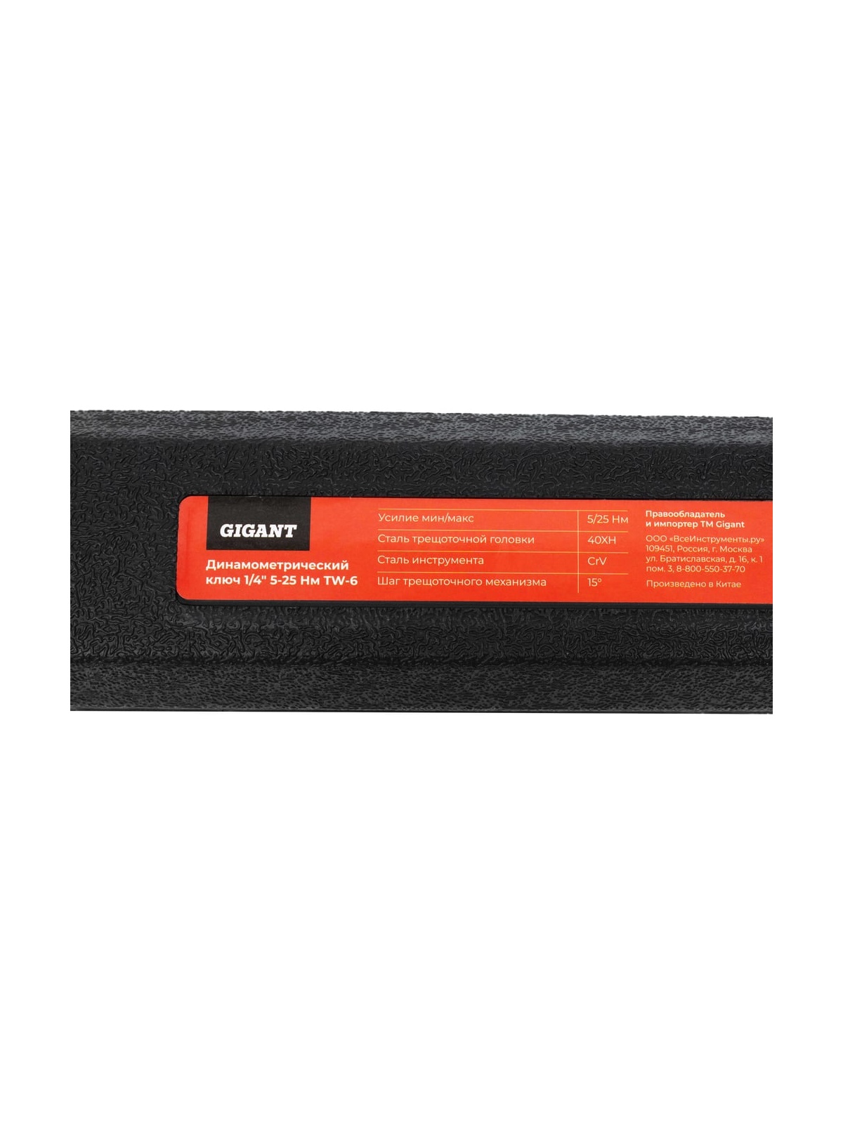 Динамометрический ключ 1/4" 5-25 Нм Gigant TW-6 предназначен для работы с резьбовыми соединениями. Данная модель изготовлена из Cr-V стали, что придает инструменту особую прочность и увеличивает срок службы. Ключ поставляется в чехле для удобной транспортировки и хранения. Имеет универсальный внешний вид. Удобен в эксплуатации. Продукция представлена профессиональными и бытовыми инструментами, имеет доступную цену и высокое качество. При изготовлении товаров Gigant используется современное оборудование и прочные материалы. Производство осуществляется на современных предприятиях России и Азии. Тестирование товаров осуществляется в два этапа, каждая партия инструментов проходит проверку на соответствие стандартам и заявленным техническим характеристикам. Это является залогом качества и надежности готового продукта. Продукция представлена широкой линейкой инструментов. У нас можно приобрести ручной инструмент, строительный, садовый, сантехнический, климатический, крепежный, автогаражный, а также станки, расходные материалы и многое другое.