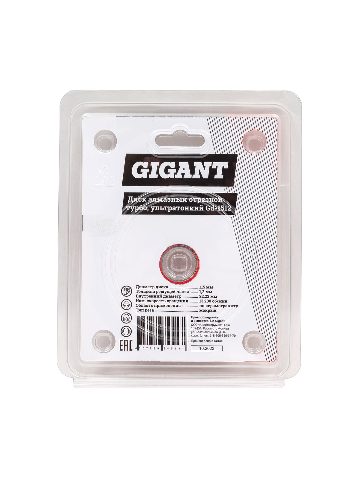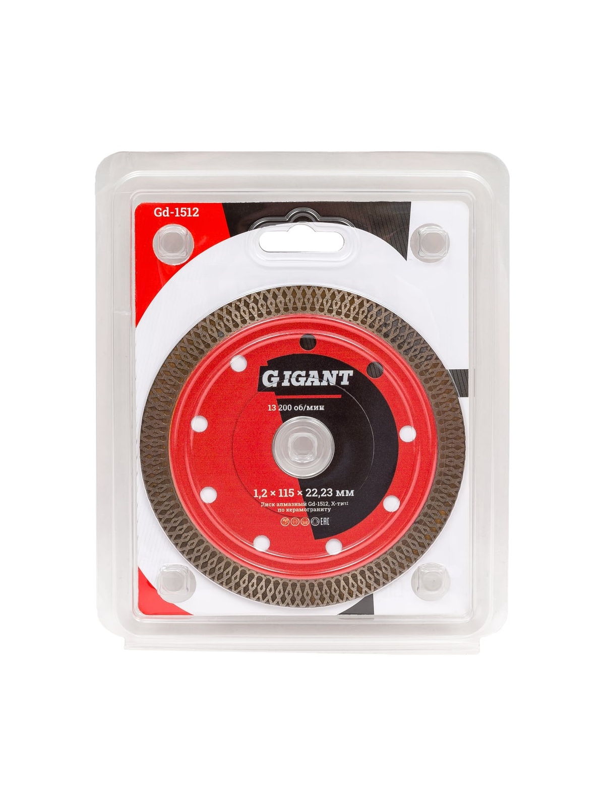 Диск алмазный отрезной Турбо ультратонкий х-тип (1.6x115x22.23 мм) Gigant Gd-1512 - это специализированный диск по керамограниту, керамике. Х образная режущая кромка позволяет резать без применения воды, не допускает сколов. Произведен методом горячего прессования.