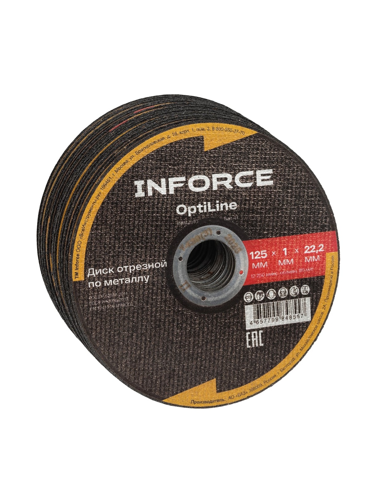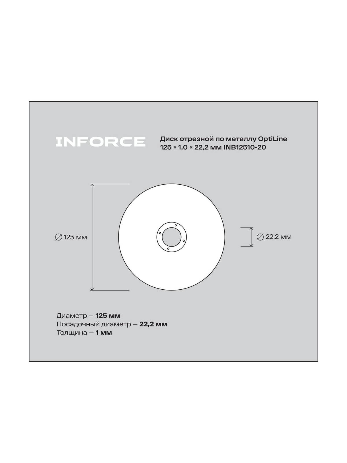 Диск отрезной по металлу OptiLine (125x1.0x22.2 мм) упаковка 20шт Inforce INB12510-20 является сменным элементом для угловых шлифовальных машин. Применяется для резки металлических изделий. Диск обладает высокой производительностью и большим ресурсом работы. Оснастка изготавливается на современном оборудовании под строгим контролем качества.