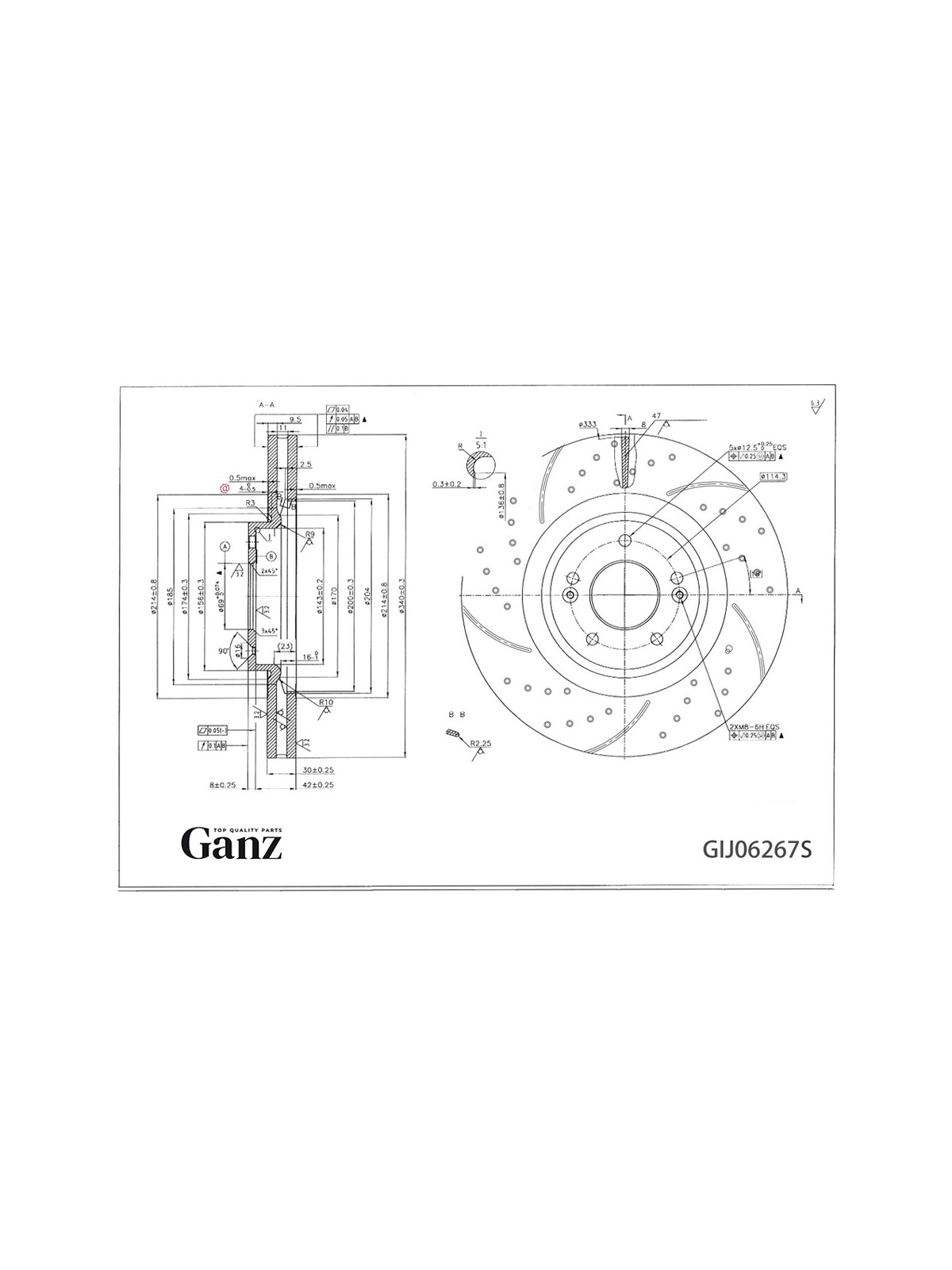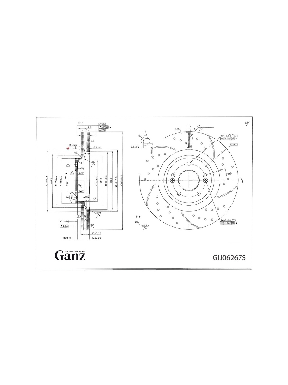Диск тормозной передний перфорированный PRO-LINE с покрытием (комплект 2 шт) HYUNDAI SANTA FE 18-> / KIA SORENTO 17-> (R18) GANZ GIJ06267S.