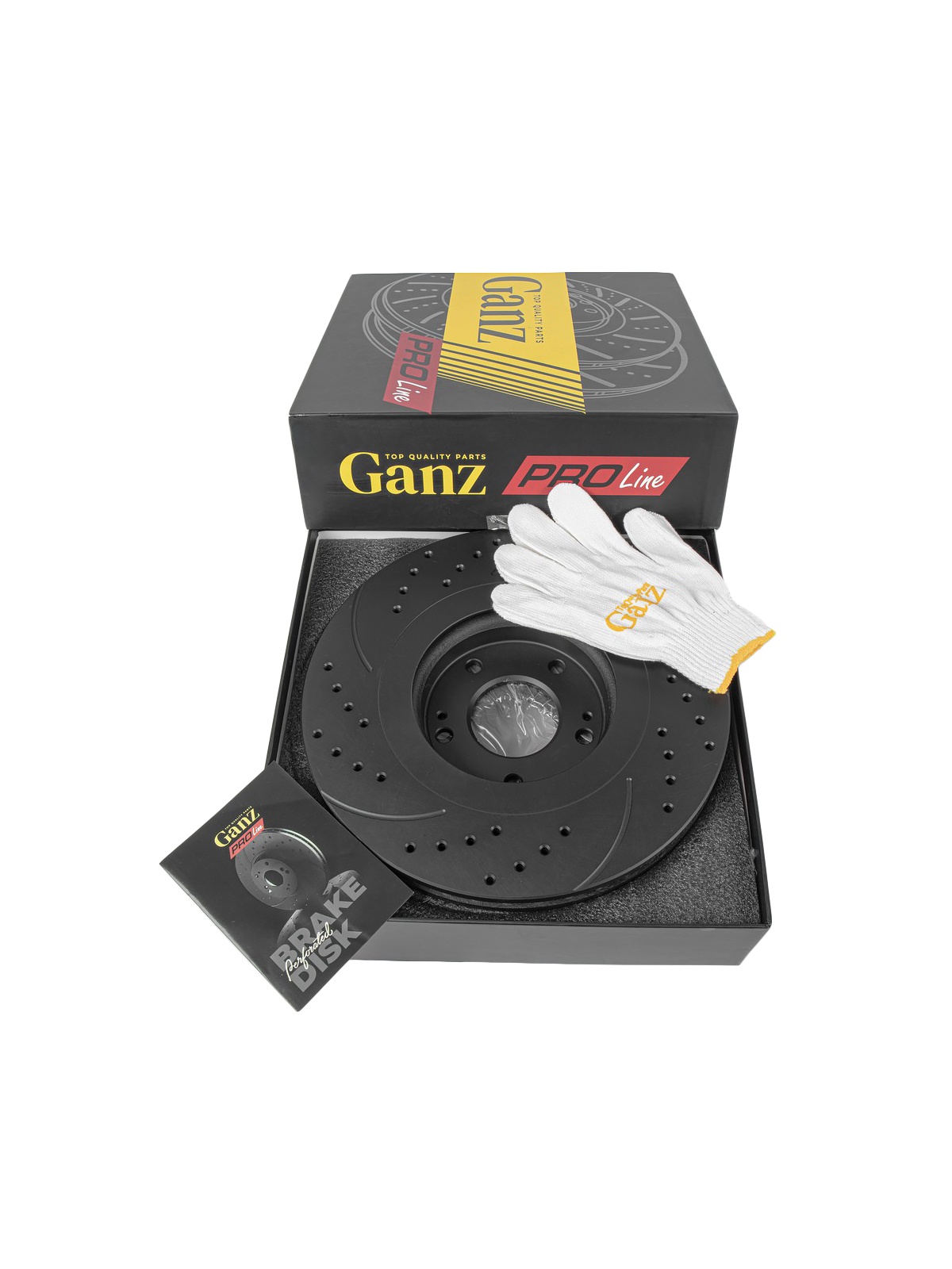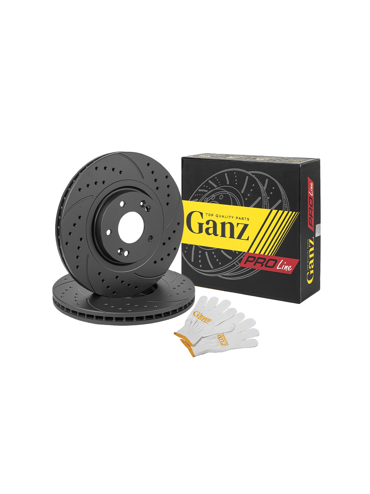 Диск тормозной передний перфорированный PRO-LINE с покрытием (комплект 2 шт) HYUNDAI SANTA FE 2006-> GANZ GIJ10018S.