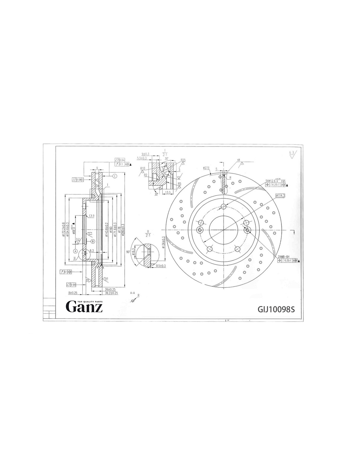Диск тормозной передний перфорированный PRO-LINE с покрытием (комплект 2 шт) KIA CERATO 08-/ SOUL 08-/KIA CEED GANZ GIJ10098S.