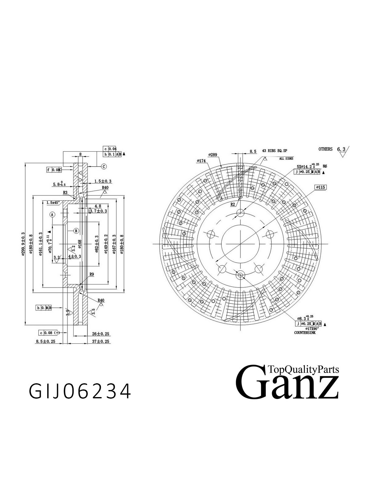Диск тормозной передний перфорированный с покрытием (комплект 2 шт) OPEL ASTRA J/ZAFIRA C/CHEVROLET ORLANDO /D=300MM GANZ GIJ06234.