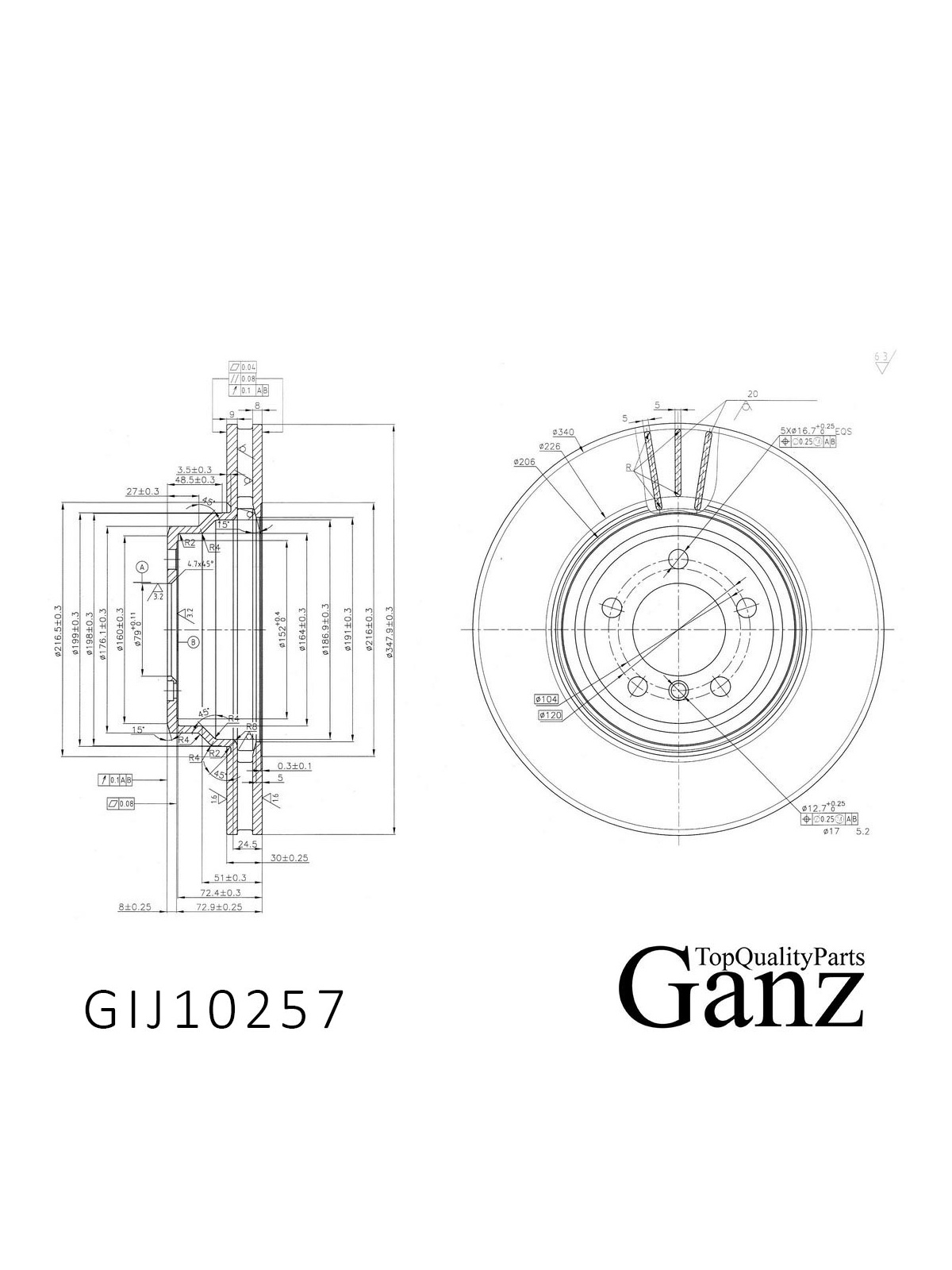 Диск тормозной передний с покрытием BMW е65/E66 GANZ GIJ10257.