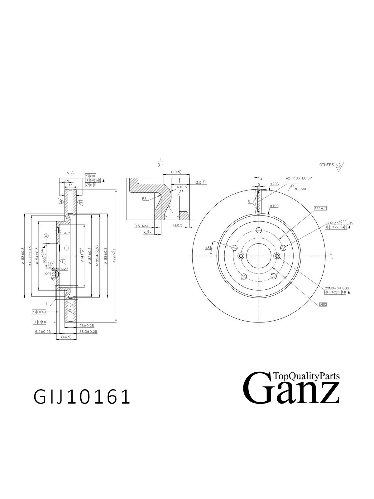 Диск тормозной передний с покрытием для Geely GS 16- GANZ GIJ10161.