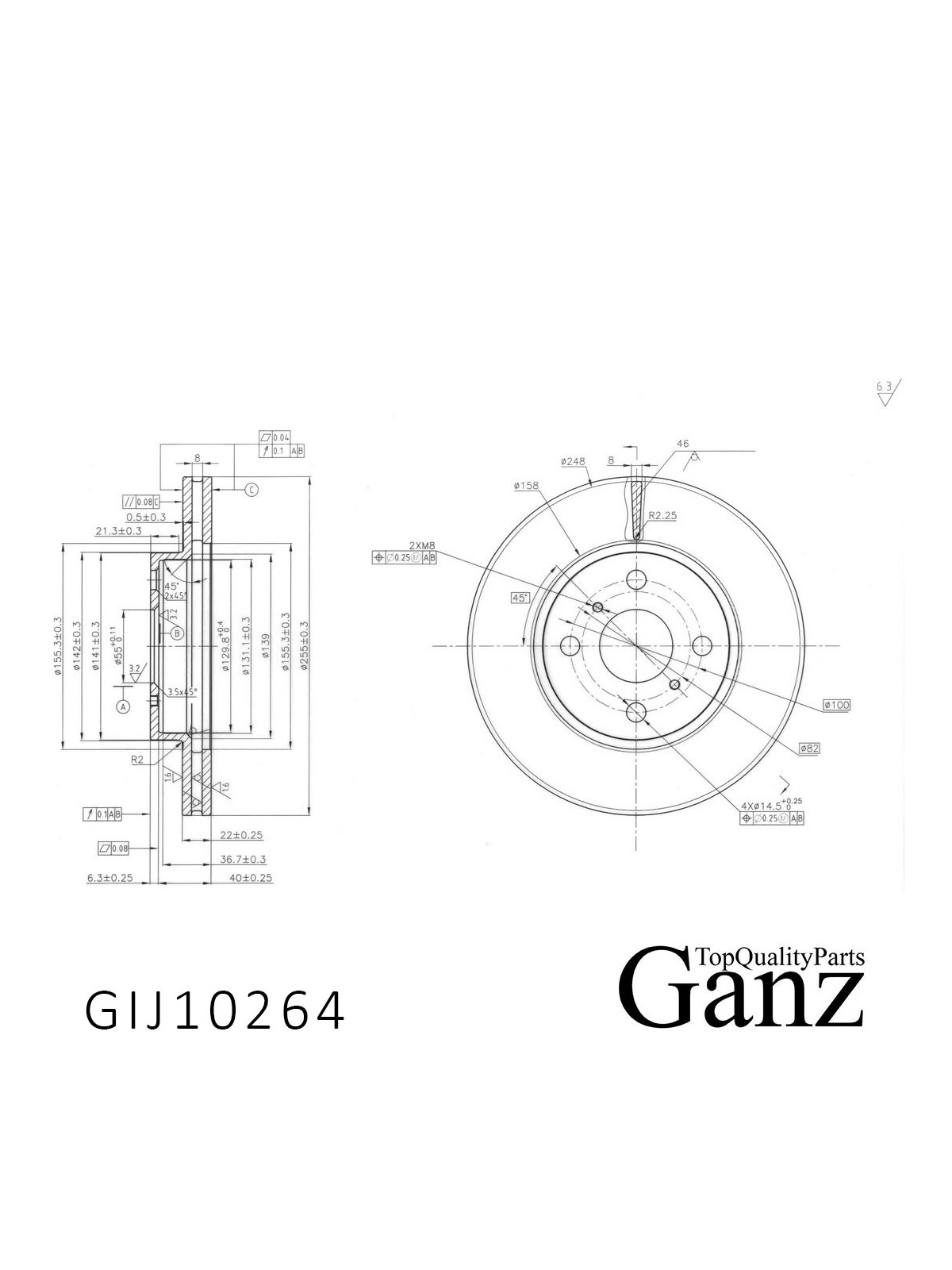 Диск тормозной передний с покрытием для TOYOTA YARIS II 2006-> /D=255MM GANZ GIJ10264.