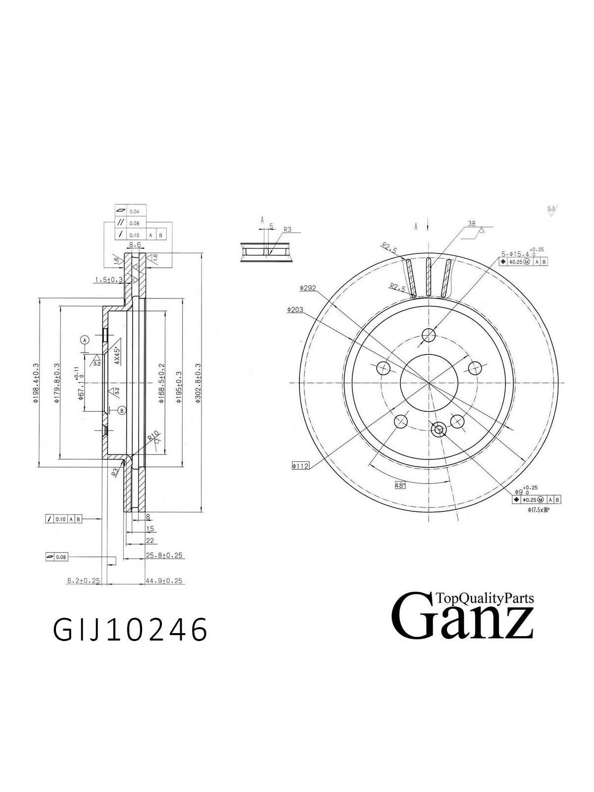 Диск тормозной передний с покрытием MB W163 GANZ GIJ10246.