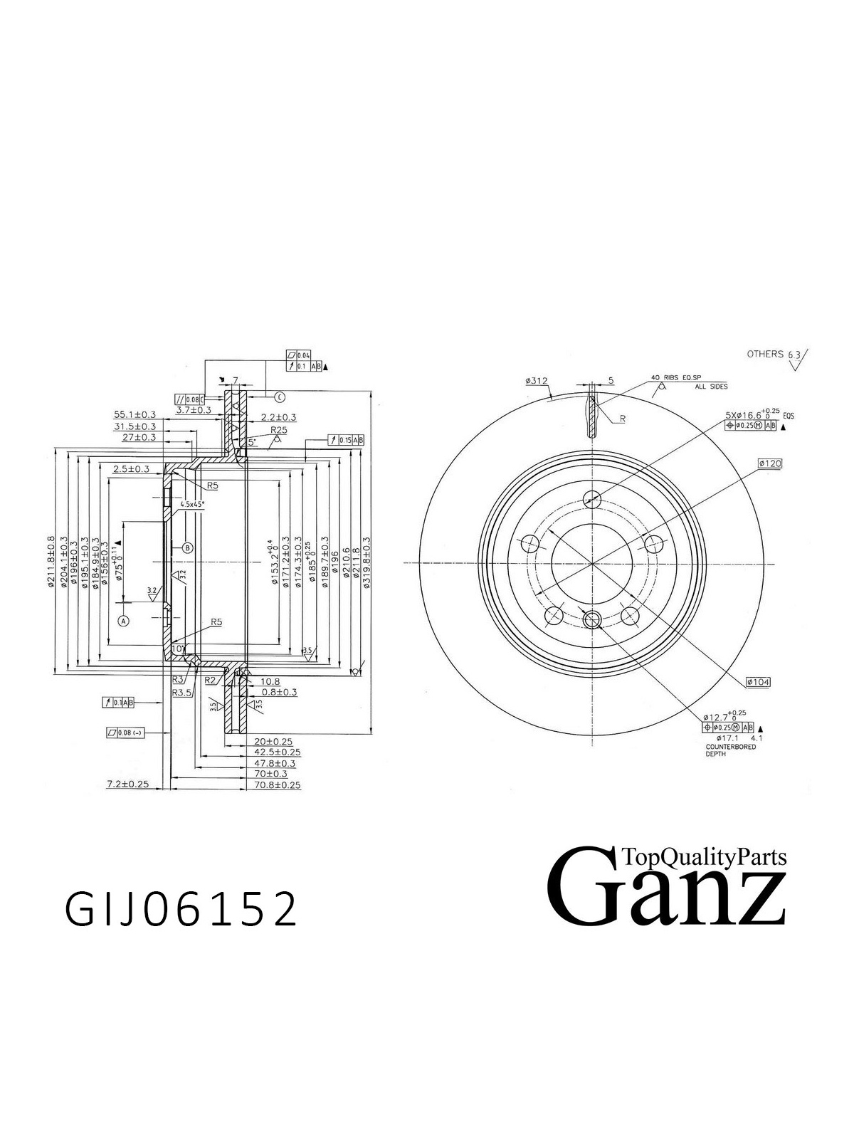 Диск тормозной задний с покрытием BMW X5 E70 3.0/X6 E71 3.0 GANZ GIJ06152.