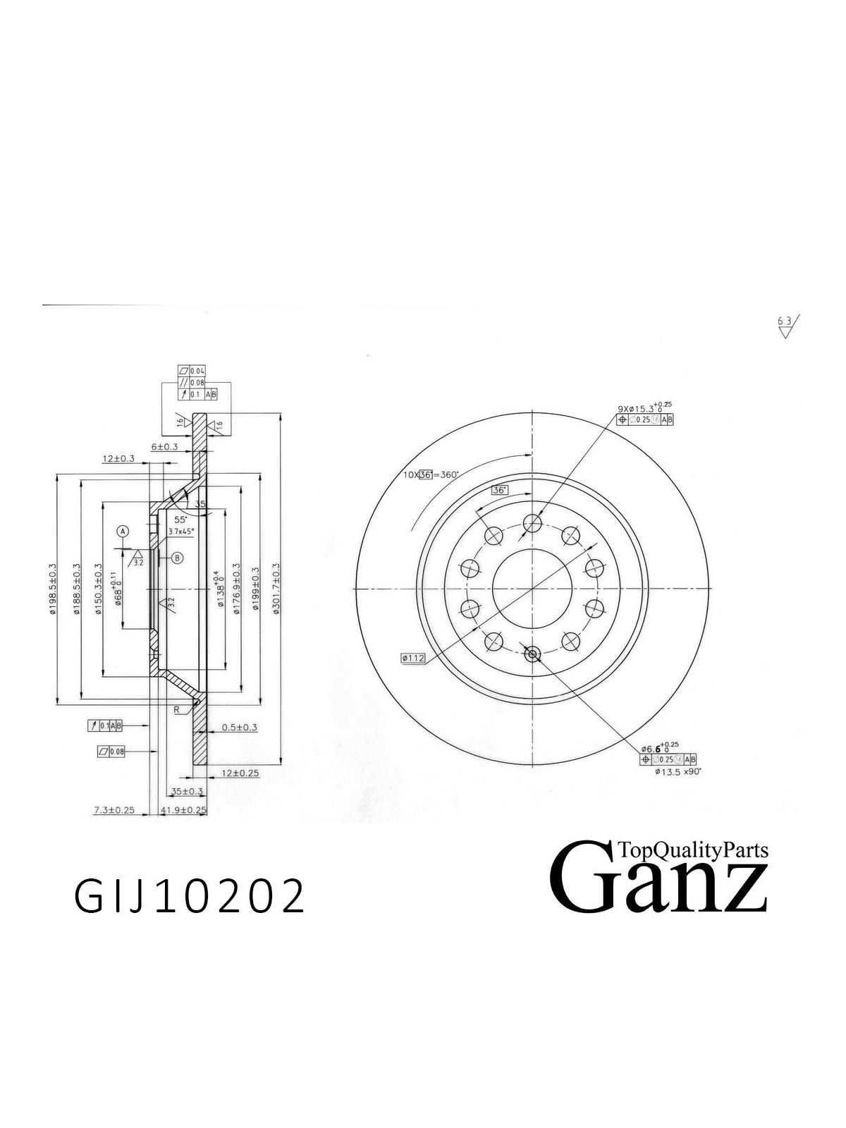 Диск тормозной задний с покрытием для AUDI A6 2.4-3.2/2.0/3.0TDI (04-) GANZ GIJ10202.