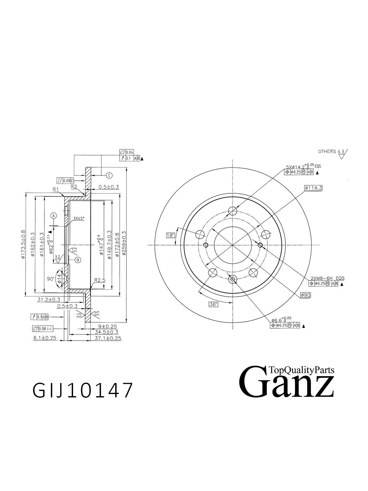 Диск тормозной задний с покрытием для SUZUKI SWIFT (10-)/SX4 S-CROSS (13-)/VITARA (15-) GANZ GIJ10147.