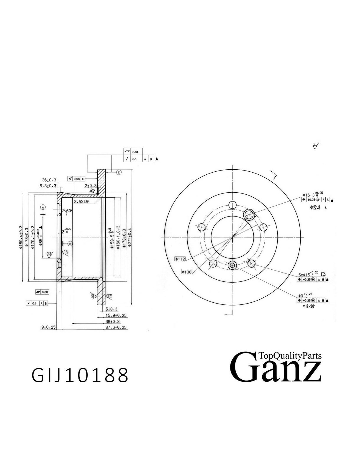 Диск тормозной задний с покрытием MB W461/W463/2/3T-SPRINTER/VW LT 28-35 II /D=272MM GANZ GIJ10188.