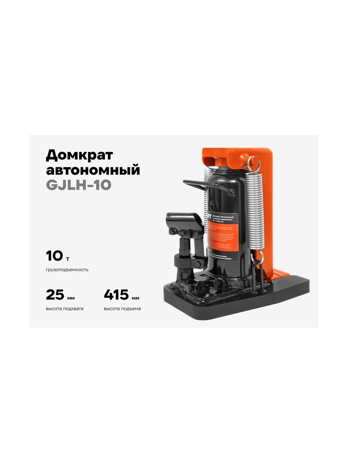 Домкрат автономный с низким подхватом Gigant GJLH-10 представляет собой надежное и функциональное устройство для подъема грузов весом до 10 тонн. Его зацепной тип конструкции обеспечивает удобство в использовании и надежность при выполнении различных задач. Металлический корпус гарантирует долговечность и устойчивость к нагрузкам. Переставная лапа добавляет гибкости в эксплуатации, а ручка для переноски облегчает транспортировку.