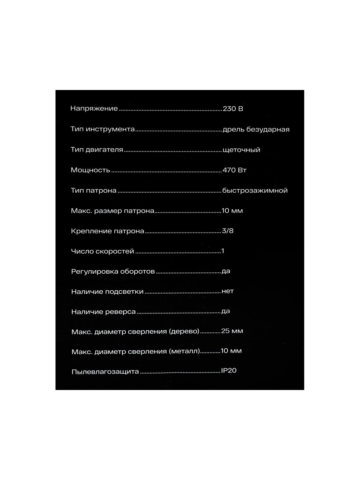 Тип инструмента - дрель безударная