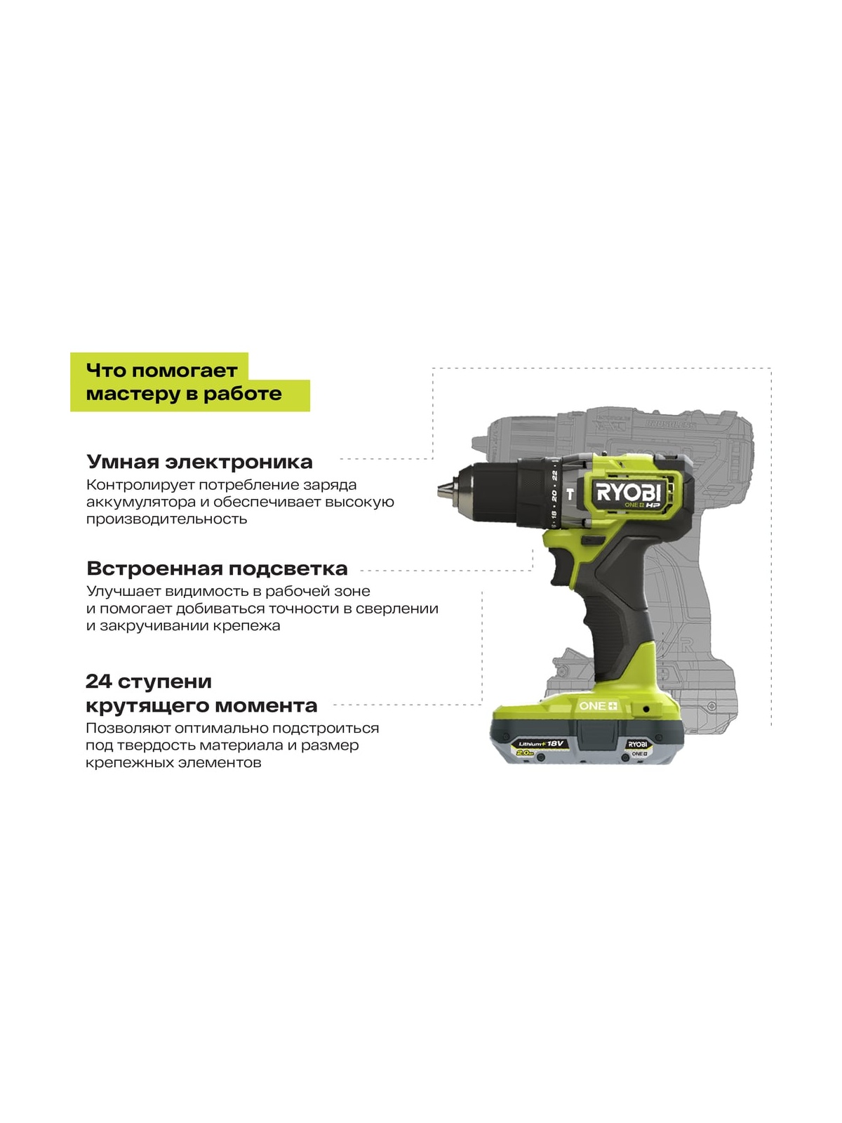 Дрель-шуруповерт ударная бесщеточная Ryobi ONE+ RPD18C-220S 5133004982 подходит для сверления мягких и твердых материалов, а также откручивания/закручивания крепежа. Работает от литий-ионного аккумулятора. Бесщеточный двигатель обеспечивает высокую производительность. Подсветка оптимально освещает рабочее пространство. Быстрозажимной патрон сокращает время на замену оснастки.