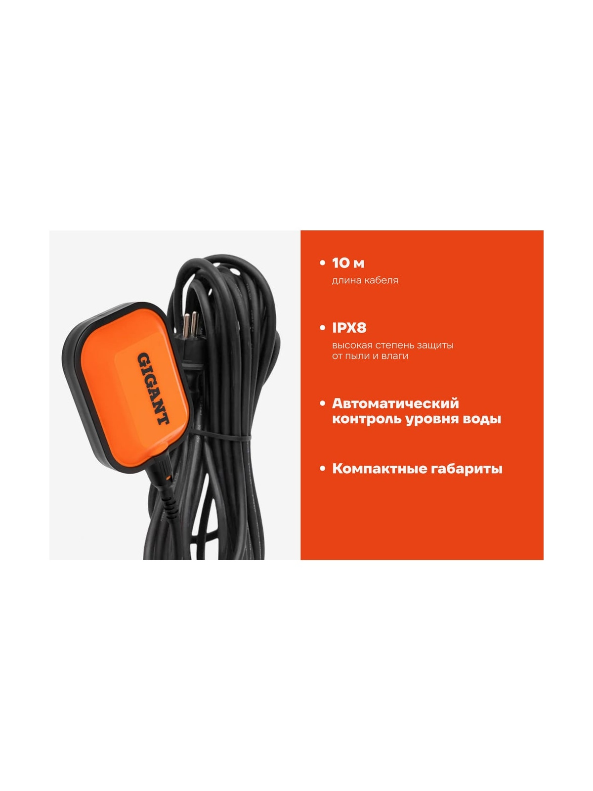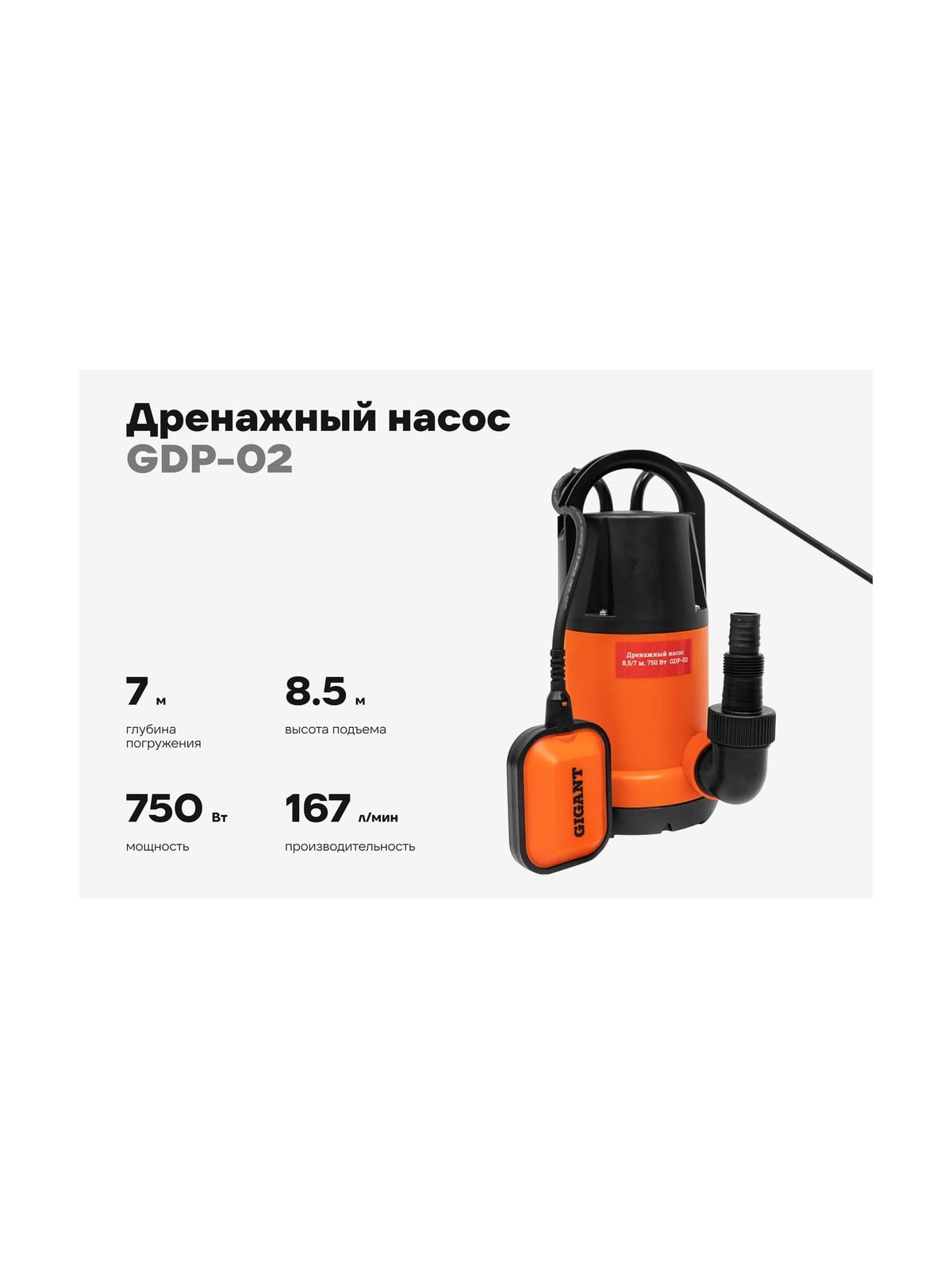 Дренажный насос Gigant подходит для перекачки чистой воды. Изготовлен из прочного пластика, благодаря чему отличается устойчивостью к образованию коррозии и агрессивным средам. Для защиты от работы вхолостую предусмотрен внешний поплавок, который отключает и включает насос в зависимости от уровня воды. Насос применяется для откачки жидкости из различных резервуаров, затопленных подвалов и строительных ям. Способен поднимать воду на высоту до 8.5 м, погружается на глубину 7 метров. Производительность инструмента - 167 литров в минуту. Продукция представлена профессиональными и бытовыми инструментами, имеет доступную цену и высокое качество. При изготовлении товаров Gigant используется современное оборудование и прочные материалы. Производство осуществляется на современных предприятиях России и Азии. Тестирование товаров осуществляется в два этапа, каждая партия инструментов проходит проверку на соответствие стандартам и заявленным техническим характеристикам. Это является залогом качества и надежности готового продукта. Продукция представлена широкой линейкой инструментов. У нас можно приобрести ручной инструмент, строительный, садовый, сантехнический, климатический, крепежный, автогаражный, а также станки, расходные материалы и многое другое.
