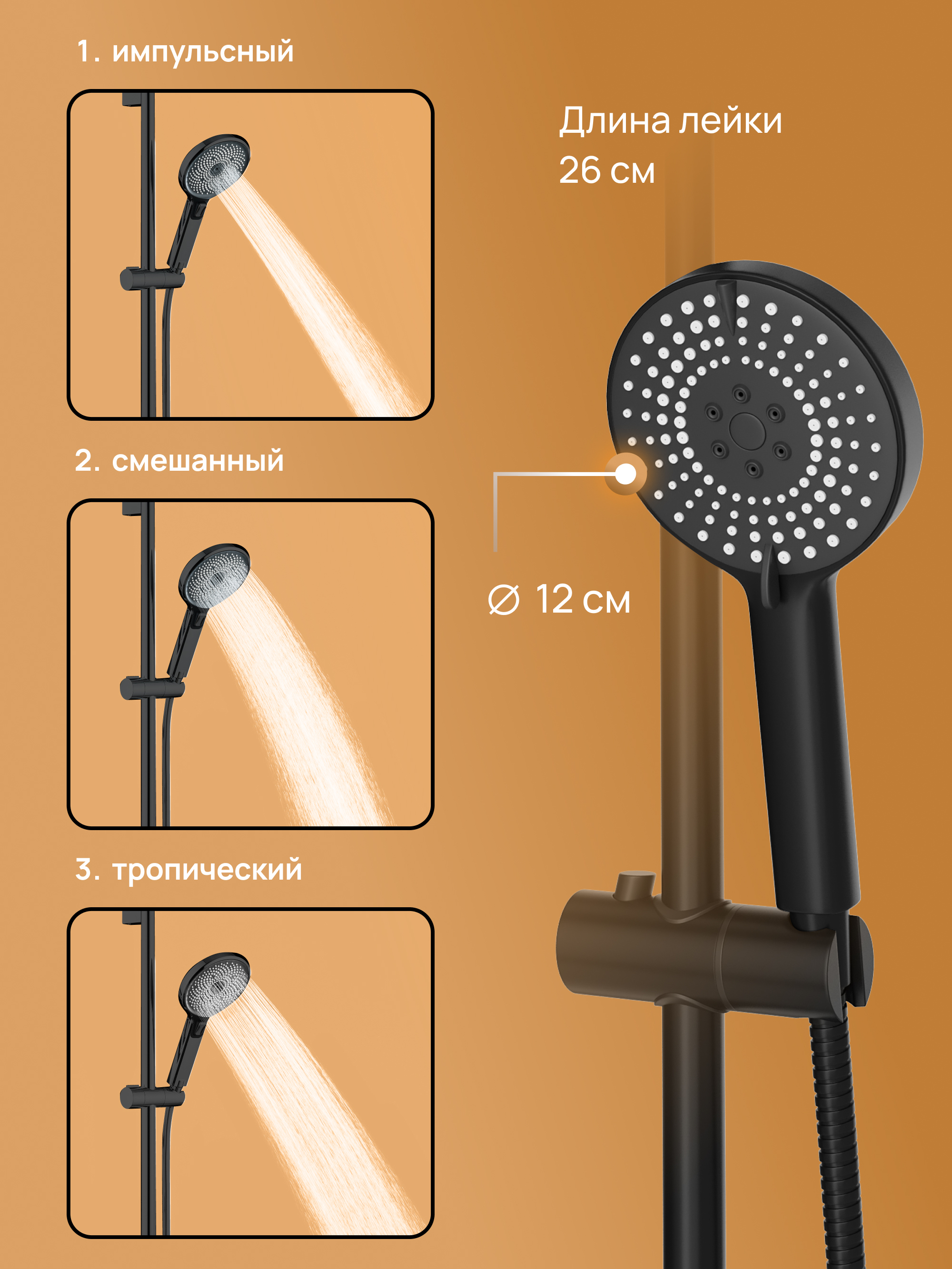 Включает - ручная лейка,верхний душ
